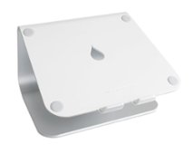 Designed to uplift. Made of a single sturdy piece of aluminum, mStand transforms your laptop into a stylish workstation with its elegant curves and silver-anodized finish. The single piece design solidly holds a laptop while the aluminum panel acts a heat sink to keep the laptop cool. A cable hole in the back of the stand routes wires to reduce clutter. Ergonomics long-term use of a laptop as the main computing device can strain The body as the user hunches down to see the screen and type. mStand raises the screen 5.9 inches (150 mm) to meet the user's eye level, thus promoting better posture, while its tilt design brings the screen closer for easier viewing. With an external keyboard and mouse, mStand creates an ideal ergonomic desktop setup for laptop users. Compatible with all sizes of Apple MacBook, MacBook Pro. Also fits most 14" Standard PC and 15" Widescreen PC with depths not more than 10.4 inches.