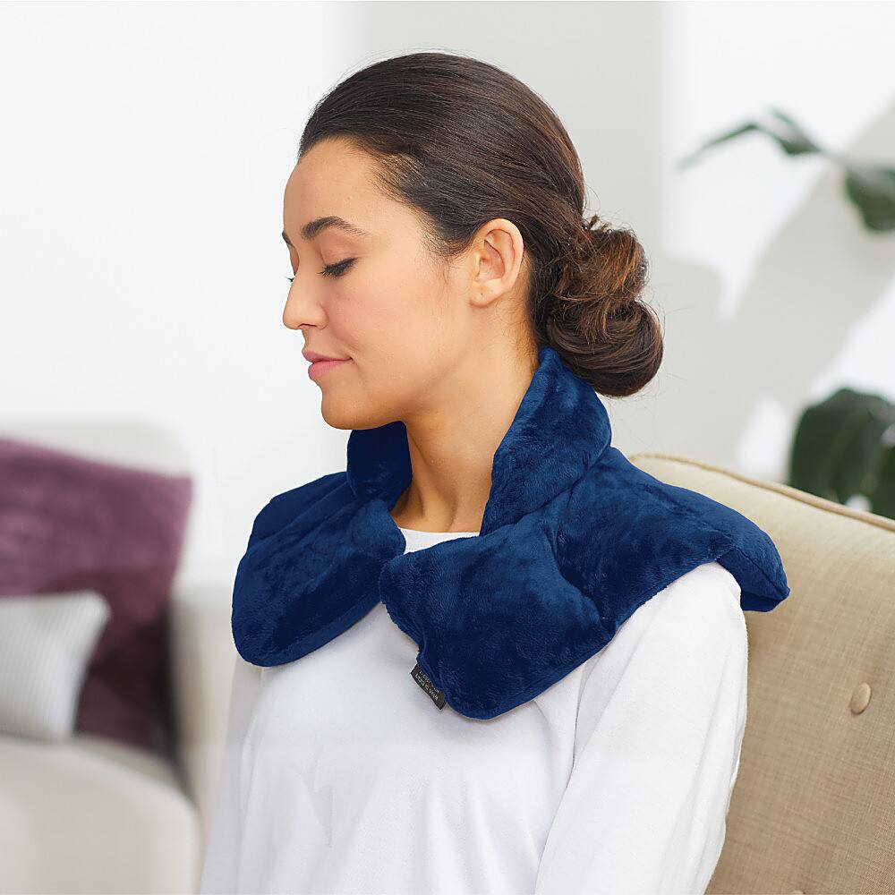 Hot therapy, cold therapy, and aromatherapy all in one. Sharper Image® Aromatherapy Neck & Shoulder Wrap combines heat and cooling therapy with aromatherapy for a total spa relaxation experience in a compact package. Relieve muscle stress, pain, and tension, or reduce inflammation, then unwind with the fragrant herb blend. 100% natural herb blend promotes relaxation. The wrap contains a soothing blend of scents with components such as lavender, spearmint, cinnamon, rosemary, chamomile, and more. Each scent works in harmony with one another to aid in relaxation, restful sleep, and overall mental and physical health. Designed for regular use by one or several persons, the wrap's unique shape allows it to contour to any body type. Its plush surface drapes comfortably around/over the neck and shoulders to apply heat or cold therapy to your muscles (use caution with direct skin contact and heat or cold). Prep in microwave or freezer. Easily prepare for heat therapy by heating the wrap in the microwave in increments of 30 seconds (do not overheat). For cold therapy, chill the wrap in the freezer for 1-2 hours. Click Add to Cart and bring the spa experience home!