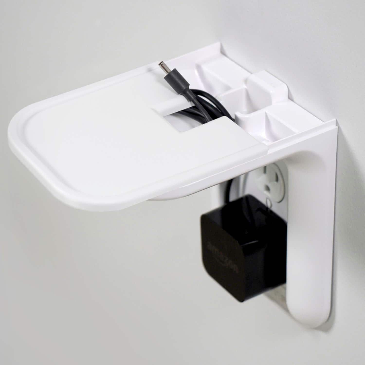 Convert outlets into classy shelves with this white Sanus outlet shelf for Sonos One. The integrated cable management discreetly routes and conceals cord, eliminating clutter and saving space. Place smart speakers and devices up to 10 lbs. directly over the Sanus outlet shelf for Sonos One outlet, and install the shelf with just one screw and a screwdriver.