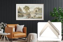 Elevate your Samsung Frame TV to the next level with our premium Alloy Bezels made of solid aluminum. Each Alloy Bezel easily snaps together and clips onto your TV in under 2 minutes. With each frame made of true aluminum, the metallic finish beautifully enhances your room through the deep German Silver finish. Our Alloy bezels are a great solution for not only contemporary decors where a sleek look is the perfect solution, but also they are great for tight spaces with the Alloy bezels at only 1.5" wide. NOTE: Our Alloy Bezels are ONLY compatible with Samsung The Frame TVs. All alloy frames are entirely Made in the USA. The aluminum moulding is extruded and forged in Tennessee and each frame is hand made and tested in Massachusetts. The installation process couldn't be easier. Simply connect the four corners using the provided corner keys then hook the frame onto the top edge of the TV and let go and watch as the side latches instantly click into place on your Samsung Frame TV. The entire process will take approximately 2 minutes. This item fits all Samsung The Frame and Frame Pro TV models from 2021-2025.
