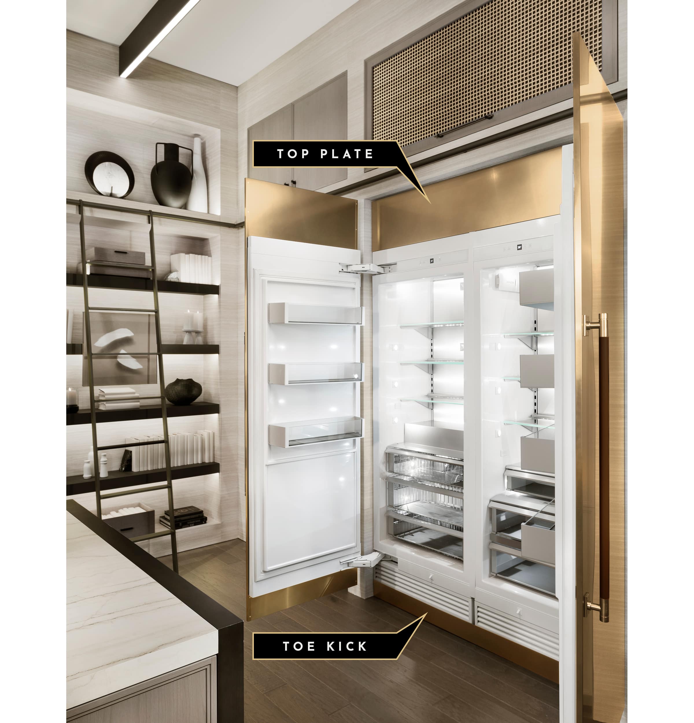 Revitalize your kitchen's appearance with this Monogram 66” top plate. Its bold, elegant bronze finish complements your existing home decor. This Monogram column panel is compatible with select Monogram 66” column refrigerators and freezers for flexible use.
