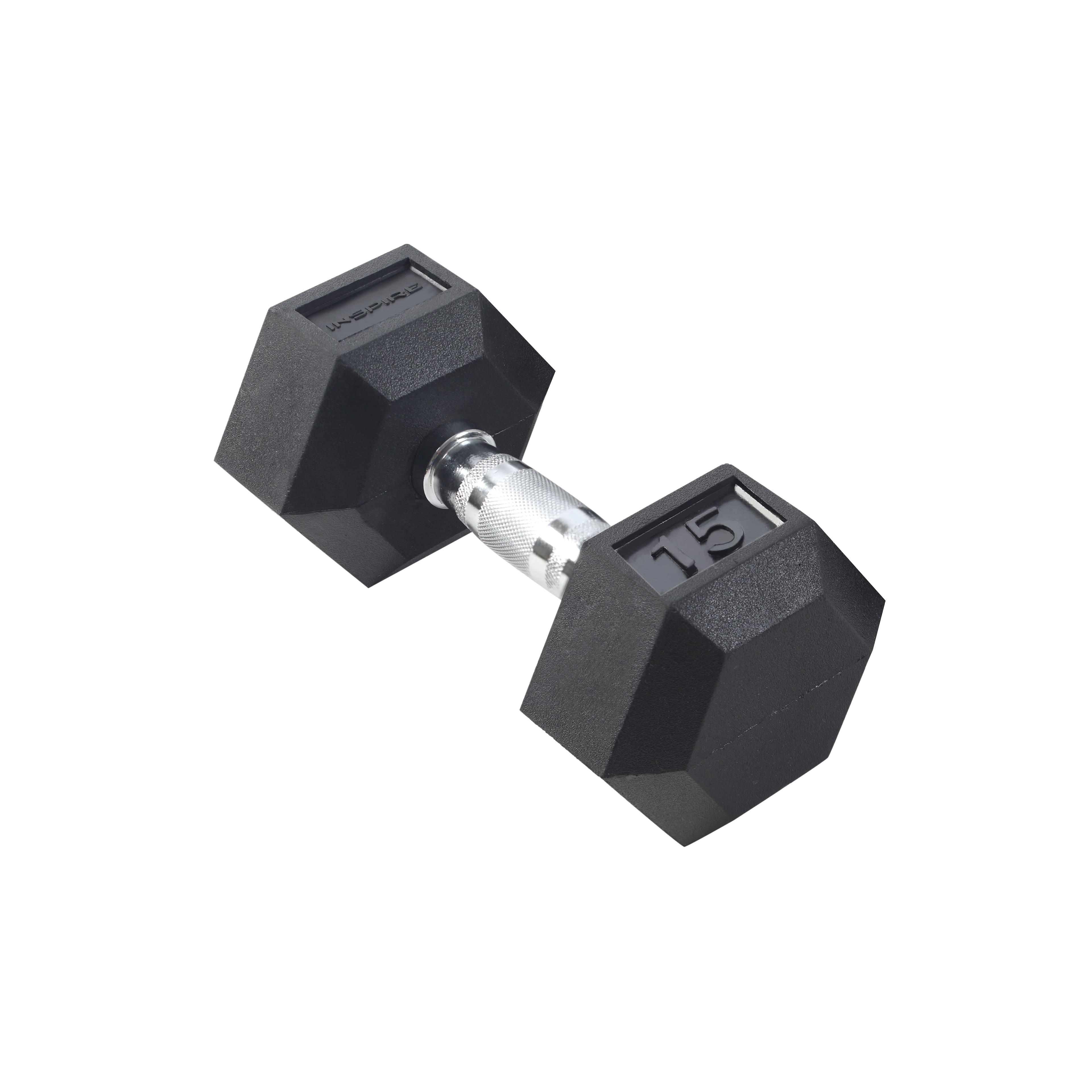 Inspire - Fitness 15 LB Rubber Dumbbell - Black