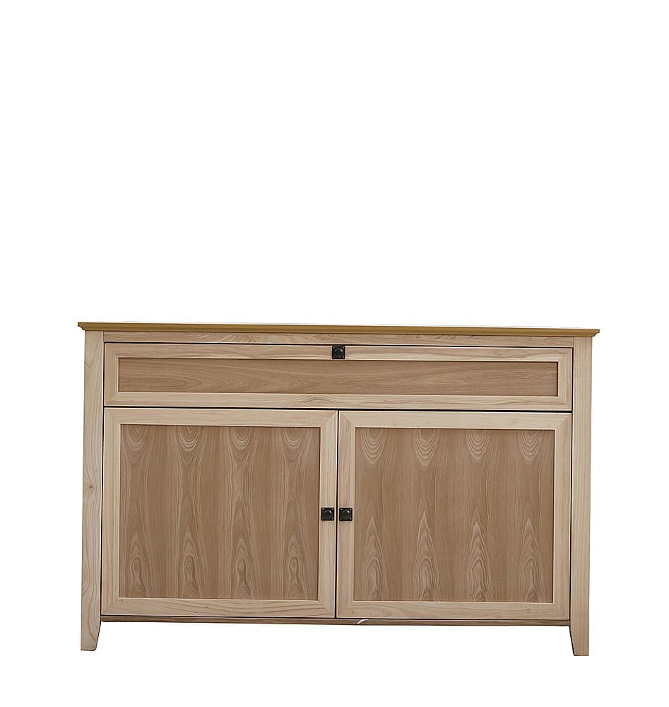 Introducing The Claymont by Touchstone - Smart Motorized TV Lift Cabinet for Flat Screen TVs up to 65 Inches, designed with farmhouse chic style to complement modern aesthetics. Crafted to accommodate 65-inch televisions (diagonal measurement - max TV dimensions are 58”W x 6"D x 35”H), The Claymont seamlessly conceals your large-screen TV and soundbar when not in use, maintaining a sleek and clutter-free space in your living room, family room, or great room. Fully assembled, the cabinet dimensions are 65 1/4 inches W x 41 1/4 inches H x 24 inches D. This unfinished model allows for custom painting finish to match your unique decor preferences. It features Touchstone's Whisper Lift II Pro Smart TV Lift installed, featuring the Universal Quick Connect system for hassle-free television installation. Safely install your VESA flat screen TV in minutes using the included mounting brackets and hardware. Additionally, functional front doors with adjustable shelving provide ample storage for components, while a drop-down front door with a solid wood or fabric panel adds to the cabinet's versatility. Enhance your viewing experience with the included Touchstone Whisper Lift II Pro Advanced Motorized TV Lift, elevating the TV in less than 30 seconds and featuring a height memory setting. Store your preferred viewing height in memory, and the lift will automatically stop at that height each time. The Claymont's Whisper Lift II Pro lift comes equipped with advanced features such as RF and IR remote controls, an RS-232 port for home theater and automation connectivity, and WiFi connectivity for control through the smartphone app or voice command with compatible Google Home and Alexa devices. Enjoy peace of mind with Touchstone's industry-leading warranty, including five years of coverage for the TV lift mechanism and two years for cabinet parts like hinges and handles. Should you ever require assistance, Touchstone's U.S.-based support team is ready to answer questions and resolve any issues promptly. Upgrade your home entertainment setup with The Claymont by Touchstone, combining style, functionality, and convenience for the ultimate viewing experience.