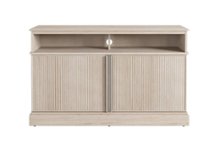 Enhance your space with the unique blend of versatility, style, and functionality present in the Olympiana 48in Champagne Console. Its stunning champagne finish and textured doors complement many different room aesthetics. Equipped with both open shelving for display and closed shelving for private storage, it is as functional as it is stylish and versatile. Confidently store or display all of your entertainment essentials with this durably made console that can support most flat-panel TVs up to 55” and accommodate all of your audio and video display needs.