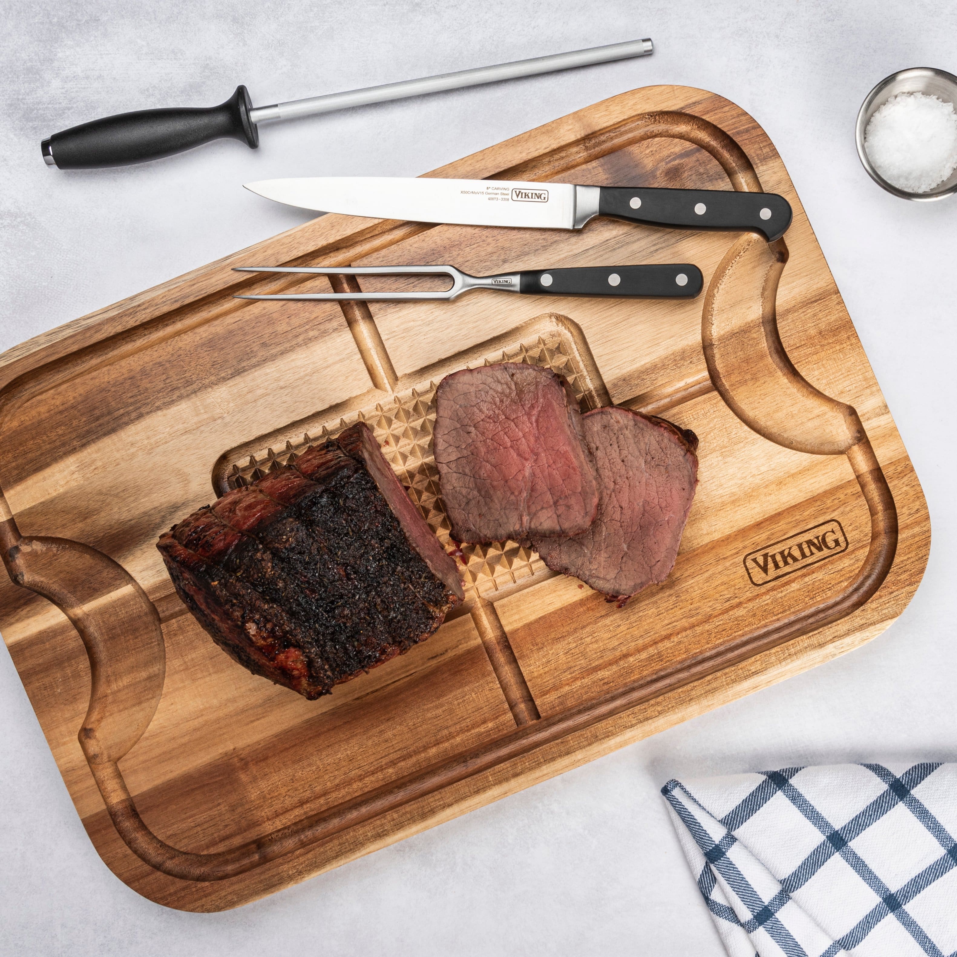 Viking - Oversized Acacia Carving Board with 3-piece Carving Set - Multicolor