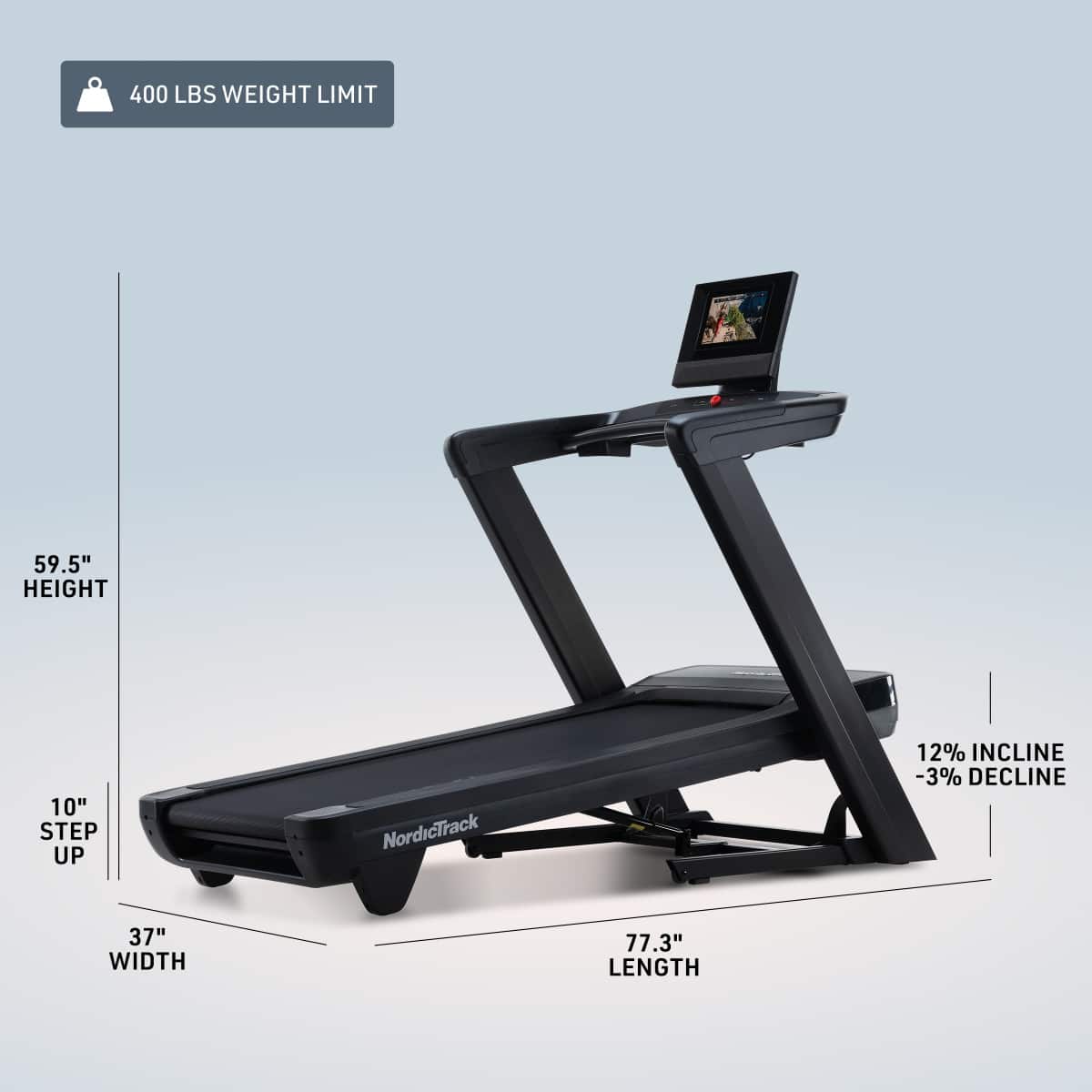About the Commercial 1250 Treadmill: The NordicTrack Commercial 1250 Treadmill is built for runners and made to perform. A speed range of 0-12 MPH allows you to run up to a 5-minute-mile pace. The adjustable 12% incline to -3% decline allows you to train with precision, mimicking the exact gradients you’ll face in your race. This specificity not only builds powerful leg strength and endurance by targeting different muscle groups but also enhances cardiovascular fitness and increases calorie burn through more efficient heart rate elevation. The 10” HD touchscreen tilts for optimal viewing while running or walking on the treadmill. The RunFlex™ cushioning is engineered specifically for runners; it offers the perfect balance, ensuring you get maximum energy return with every stride, without sacrificing the support you need. During your workout, the AutoBreeze™ fan keeps you cool and automatically adjusts based on the intensity of your workout. A USB-C port lets you charge your phone while you move. After your workout, this foldable treadmill easily folds and rolls away to save space, making it perfect for home gyms. About iFIT: iFIT offers over 10,000 workouts led by professional athletes and fitness experts. With the iFIT Pro Membership* (sold separately), you can access a wide range of training programs, including strength, yoga, HIIT, and more. iFIT's SmartAdjust™ technology personalizes each workout to your fitness level, and ActivePulse™ adjusts workout intensity based on your heart rate, ensuring optimal training. The iFIT platform also integrates with popular fitness apps like Strava, Garmin Connect, and Apple Health, allowing you to track your progress seamlessly.