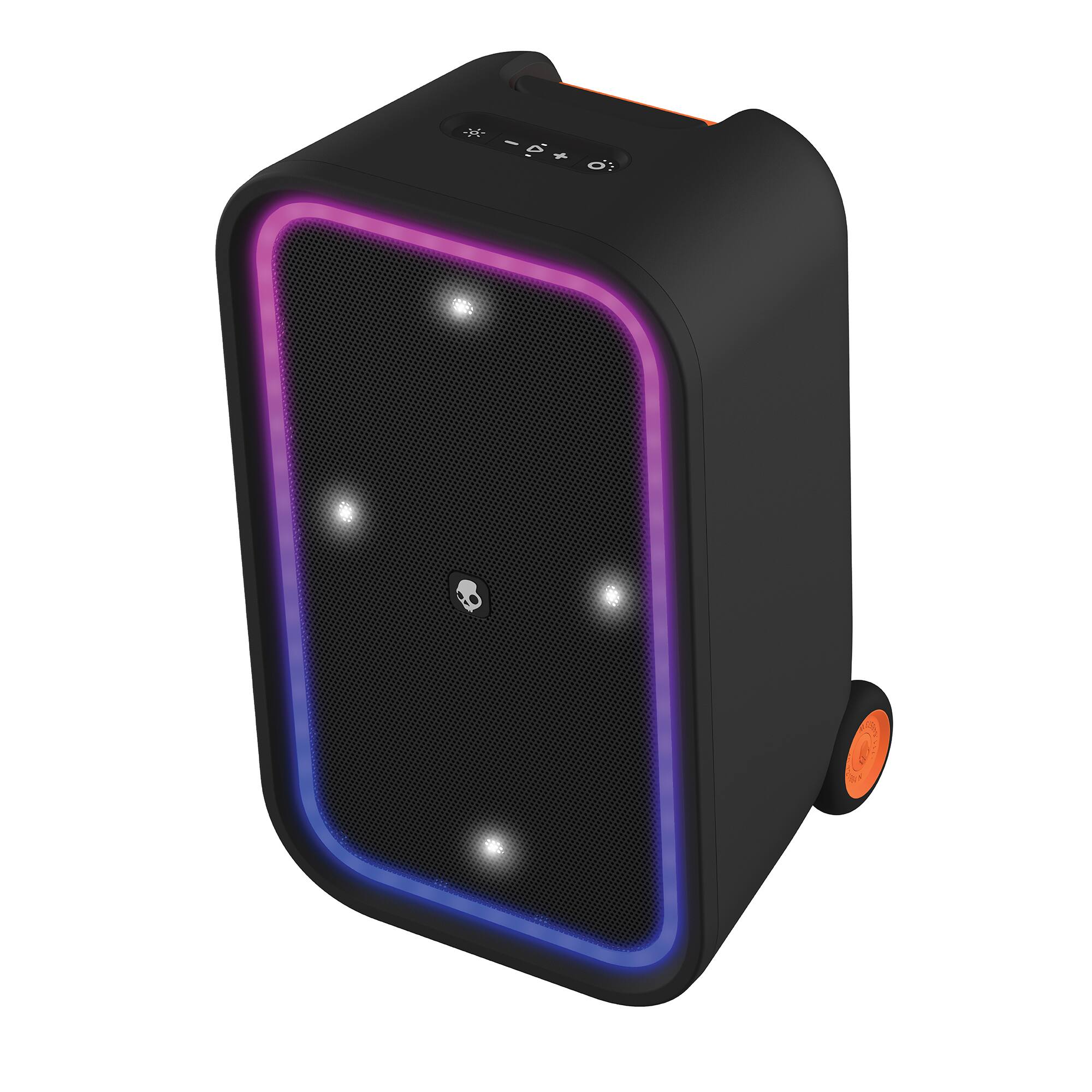Most portable speakers leave you wishing for more. Not Stomp. This is a full-frequency speaker with beautiful, bright highs, rich mids and deep, punchy bass. Stomp packs enough punch to handle a house party on its own, but it adds the convenience of total portability, water-resistant construction, the ability to link to up to 99 more Skullcandy wireless speakers and an LED light show.