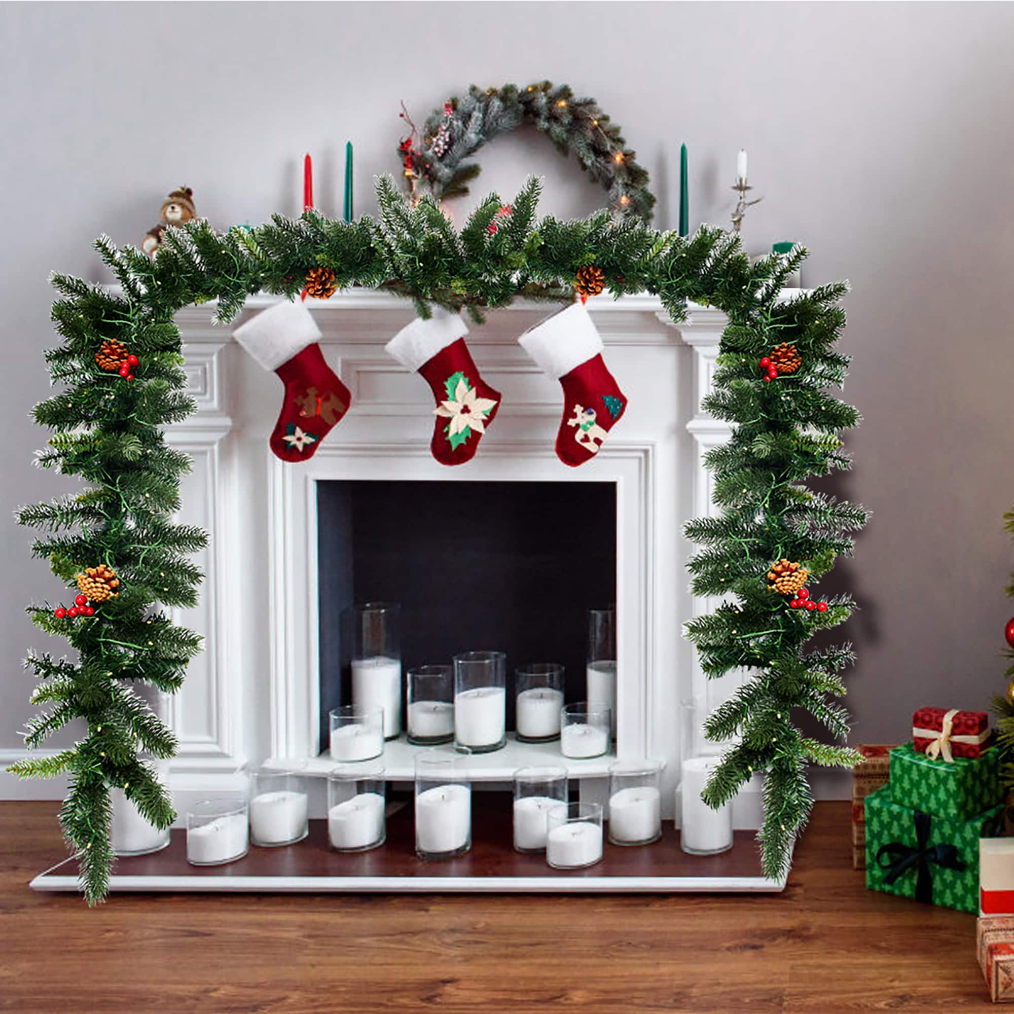 The 9FT Pre-lit Christmas garland serves to accompany with you through the Christmas. The mixture of light green PE and traditional PVC tips providing it with a fresh look that will last all season. Containing 100 LED lights, the Christmas rattan will provide a colorful and shiny space for you, which also brings the warmth to the winter. When the night falls, you can turn on the light, and then it will be the most eye-catching decoration. With the timer, it’s convenient to control the light too. With pine cones and red berries on it, there is no need for extra decorations. It offers different Christmas elements and makes the festival more cheerful. So whether it’s hung on the wall indoors or outdoors, surely it will deliver the vitality and warmth to you.