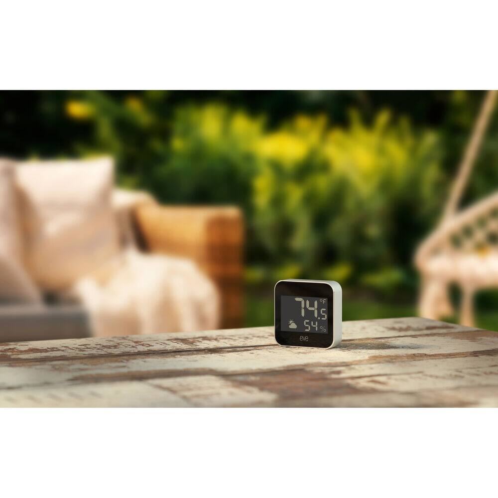 Track temperature, humidity, and barometric pressure changes over time with the Eve Weather Station with Matter for intelligent local weather monitoring. This weather station analyzes barometric pressure changes to provide 12-hour weather trends. Weather information is displayed on the unit's screen or on your iOS device.