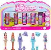 Enter the world of Barbie doll with Mini Barbie Land -- a place to imagine big and Dream in Mini! The set includes two Color Reveal mini dolls with a colorful water unboxing, two Cutie Reveal mini dolls with a cute costume reveal and tiny matching pet and one Pop Reveal mini doll featuring a sensory unboxing with fun squishy compound. Remove the compound to reveal a Barbie mini doll! Which doll will you reveal? Each 1.5-inch doll bends at the waist and stands on a heart-shaped base that fits into Mini Barbie Land playsets (sold separately). Also use the mini drink cup to store the doll. Fans ages 4 years and older will want to collect all these cute dolls to build their own mini world!
