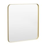 LOVMOR - Tempered Glass Rounded Rectangle Framed Wall-Mounted Bathroom Vanity Mirror - 36" x 36" - Gold