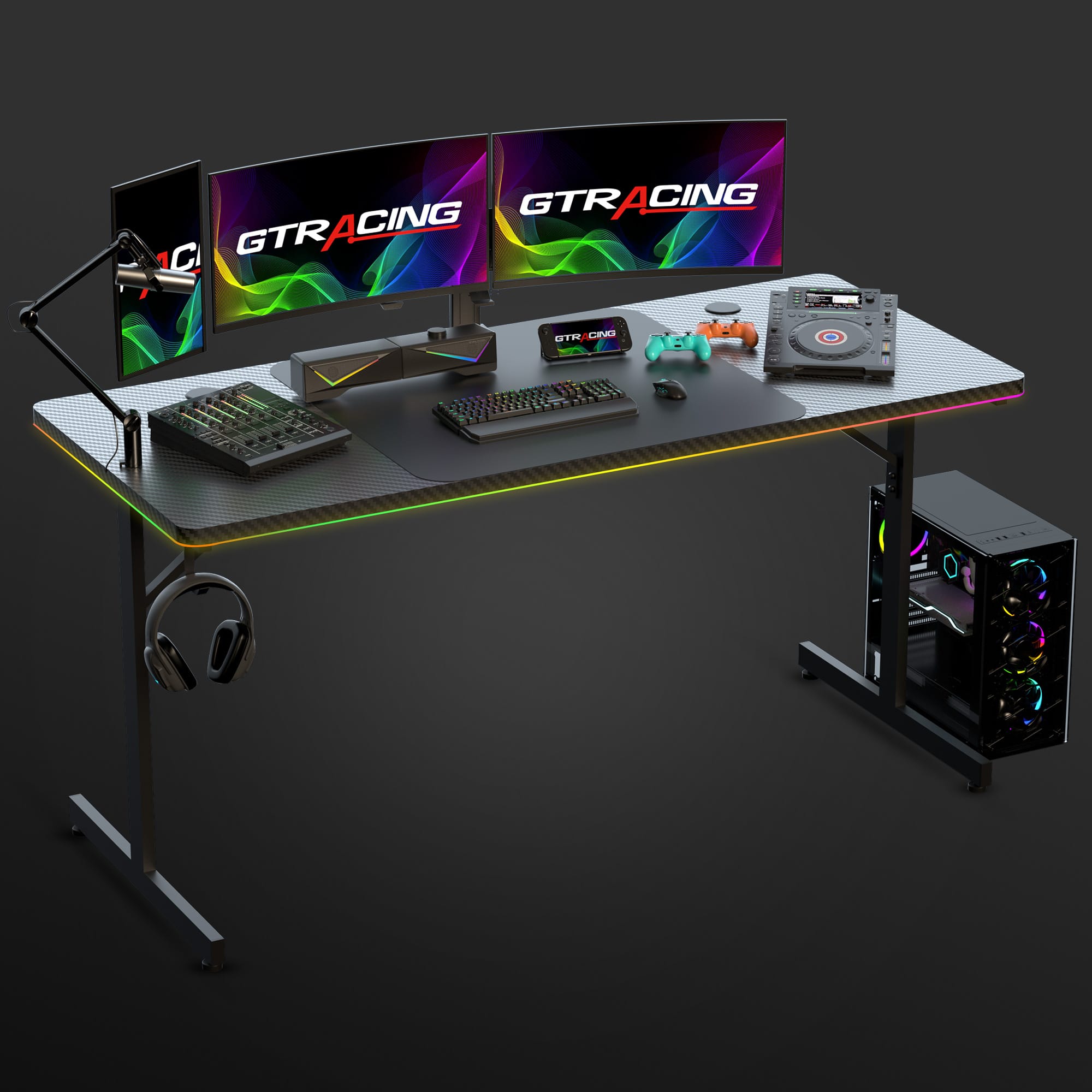 GTPlayer - 55 in. Large RGB Gaming Desk with Mouse Pad T-Shaped Office Chair Computer Desk Spacious Work Surface Table - Black