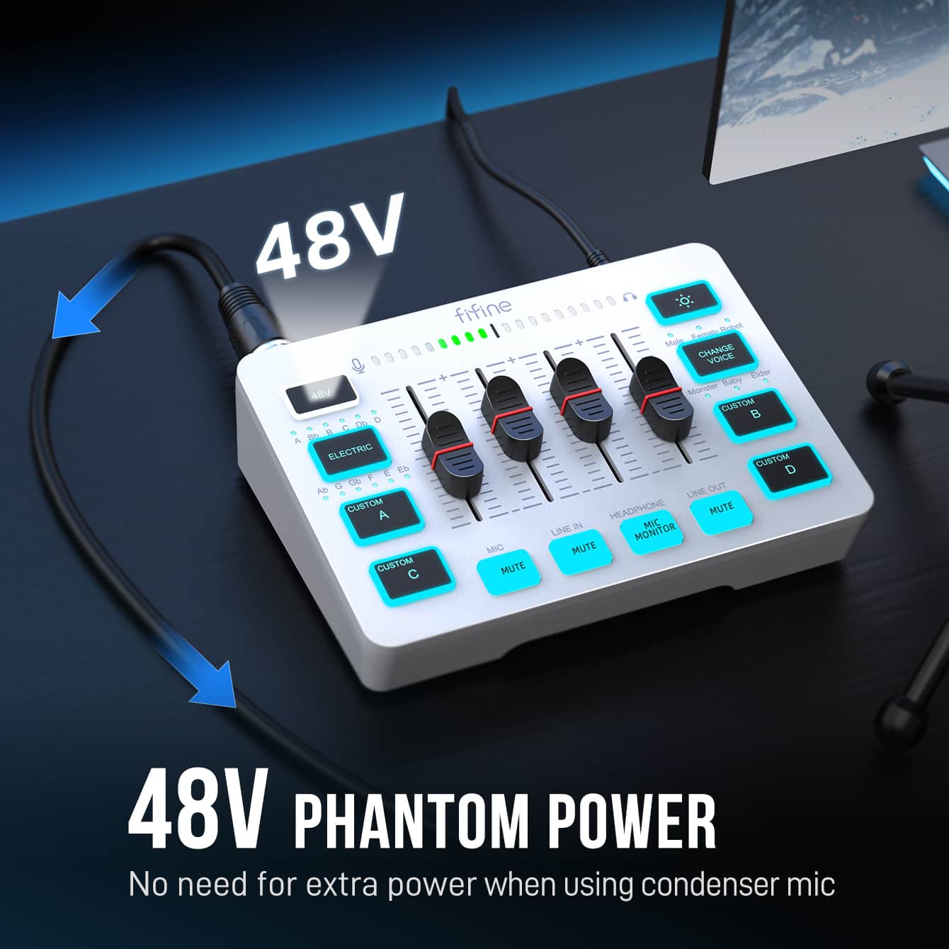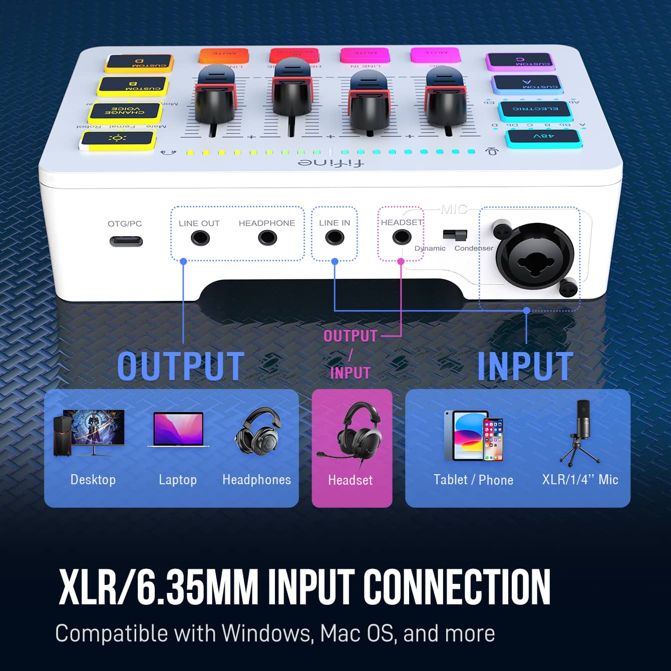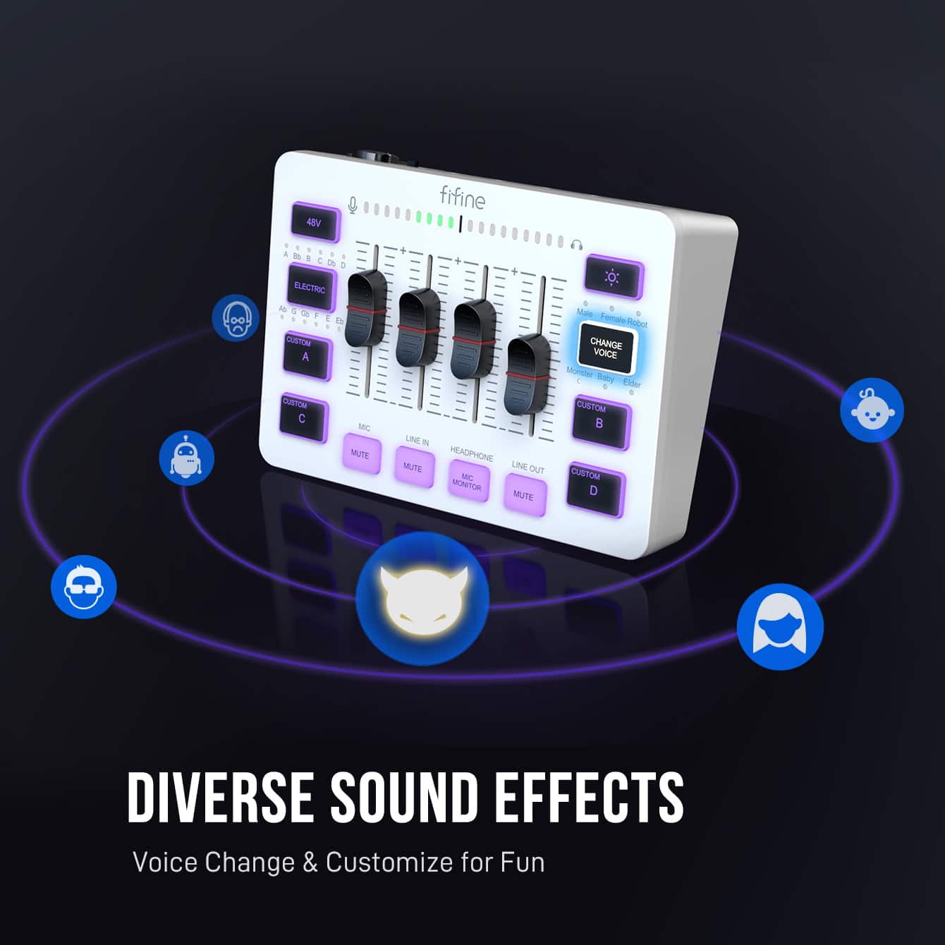 FIFINE - USB Audio Mixer - 4 Channel Audio Interface with RGB for Gaming, Streaming, Content Creation - White