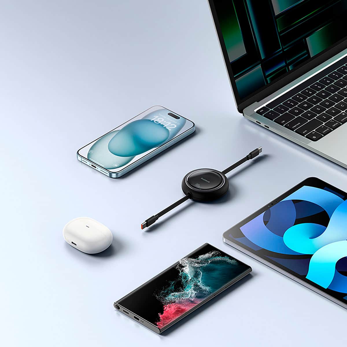 Baseus - Free2PullRetractable Charging Cable USB-C to USB-C 3 feet 100W - Black