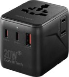 Travel the globe without worry using the Insignia 20W Travel Adapter. It features four plug types (United States, European Union, United Kingdom, and Australia) and is compatible with 13 different outlet types, allowing you to stay charged in more than 200 countries and territories around the world. The adapter offers 2 international AC outlets, 2 USB-C ports and a USB port. The blades and pins retract into the adapter when not in use to easily toss in your bag and take on the go.