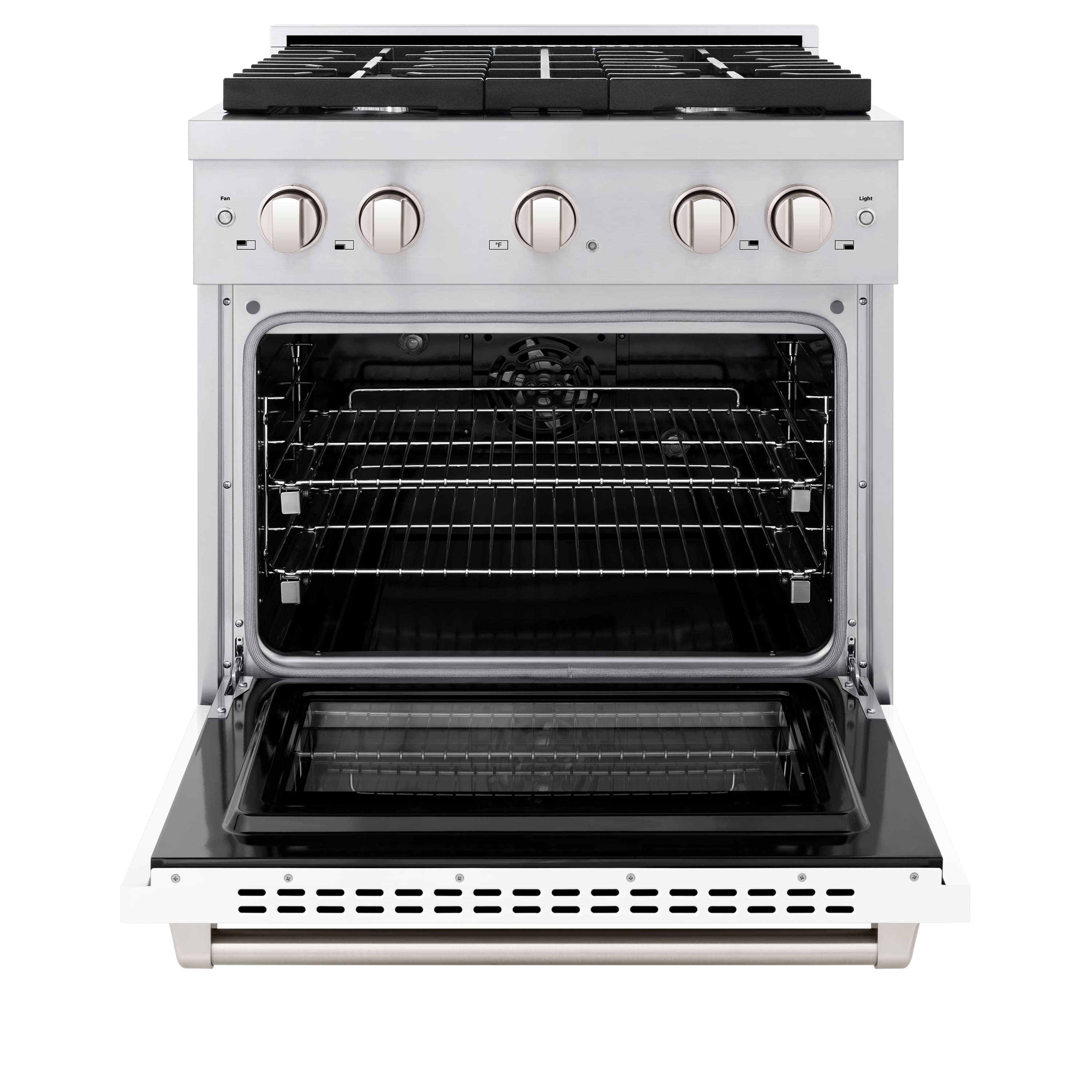 On sale • save 15%Luxury isn’t meant to be desired - it’s meant to be attainable. The ZLINE 30 in. 4.2 cu. ft. Paramount Dual Fuel Range with 4 Burner Gas Cooktop and Electric Convection Oven in Stainless Steel with White Matte Door (SDR-WM-30) combines the versatility of a gas cooktop with 4 Italian-made auto-reignition burners, an electric convection oven with digital thermostat technology, enhanced cast iron grates, and a beautiful white matte door with a Horizon window design allowing you to master every meal. With a modern, timeless style and refined functionality, ZLINE Paramount Dual Fuel Ranges are masterfully crafted to deliver an elevated culinary experience.