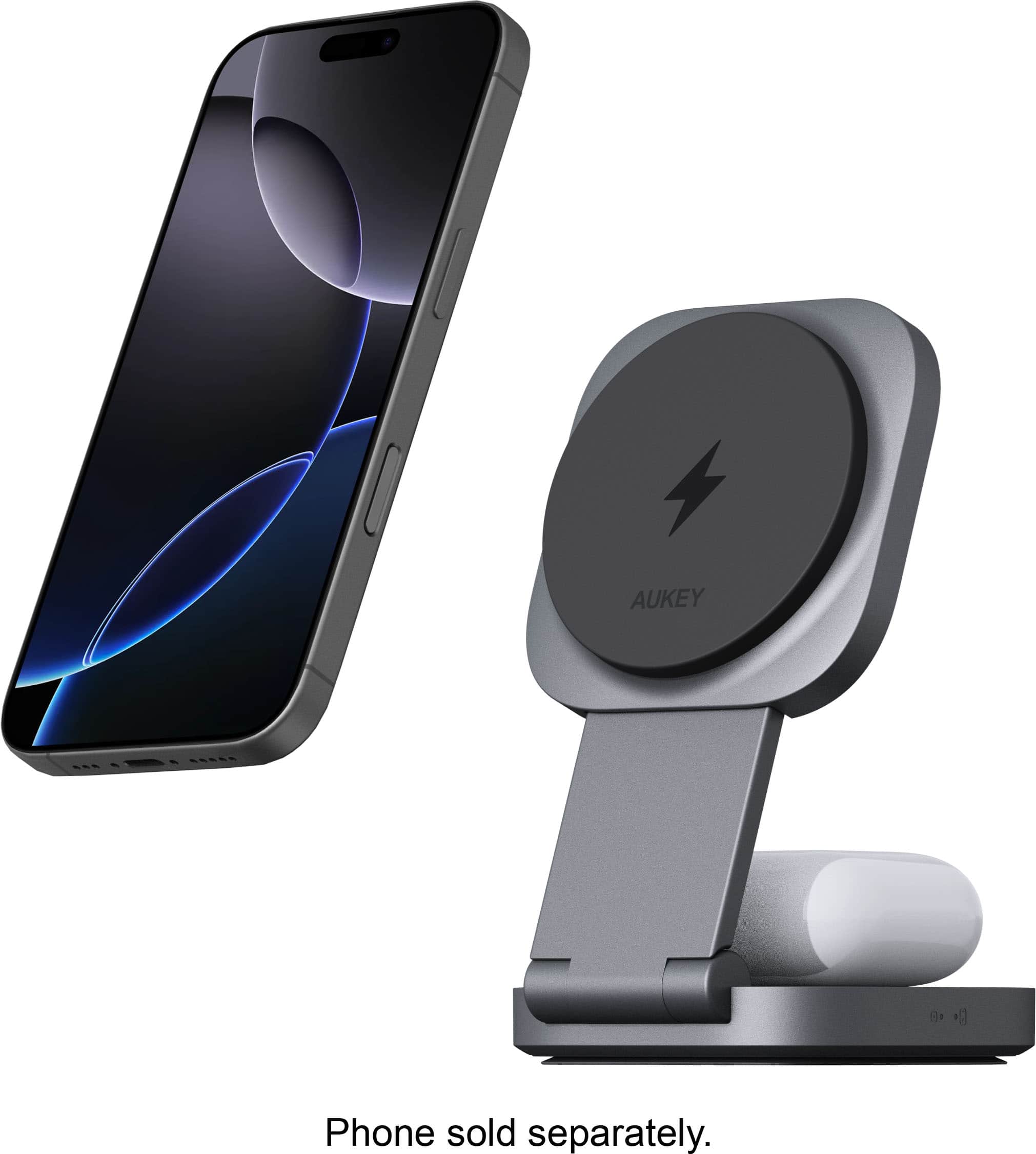 Aukey - 2-in-1 MagSafe Qi2 Wireless Charging Stand - Gray