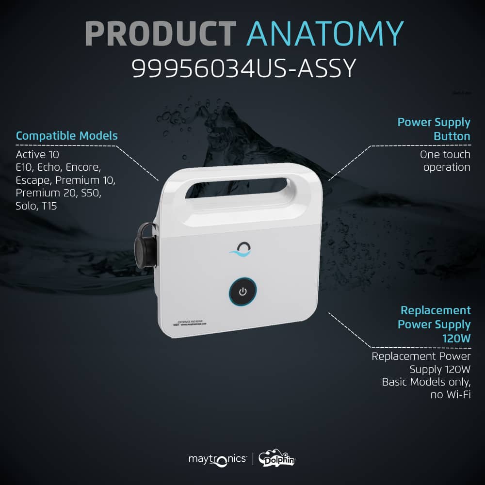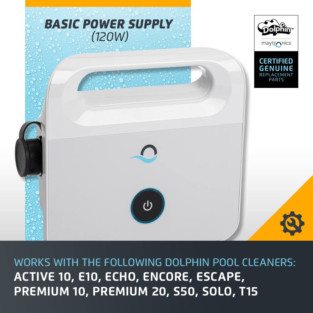 Keep your Dolphin pool cleaner running at peak performance with the Replacement Power Supply 120W (Advanced, Bluetooth). Designed for models equipped with Bluetooth, this power supply enables advanced features like weekly timers, cycle selection, and delay mode. It’s compatible with a wide range of Dolphin models, including the Active, Explorer, Proteus, Triton, and many more. Made with Maytronics Certified Genuine Parts, it ensures durability and quality while maintaining your Dolphin’s top condition for effortless pool maintenance.