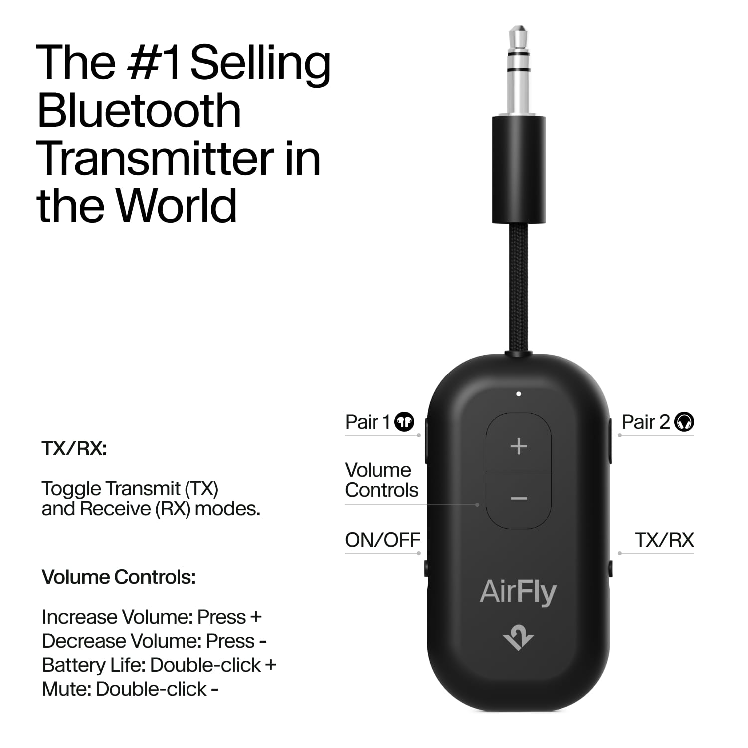 On sale • save 17%AirFly Pro 2 is the easiest way to use your Bluetooth headphones with devices that have a headphone jack. Plug it into in-flight entertainment systems, gym machines, or iconic devices like iPods, and enjoy high-quality sound without the wires. Share the experience by pairing two headphones to the same source, or switch to streaming mode to send audio from your phone to your car or classic home speakers. With intuitive pairing buttons, physical volume controls, and 25+ hours of battery life, AirFly Pro 2 ensures you can stay connected and enjoy your sound, cable-free, wherever you go.