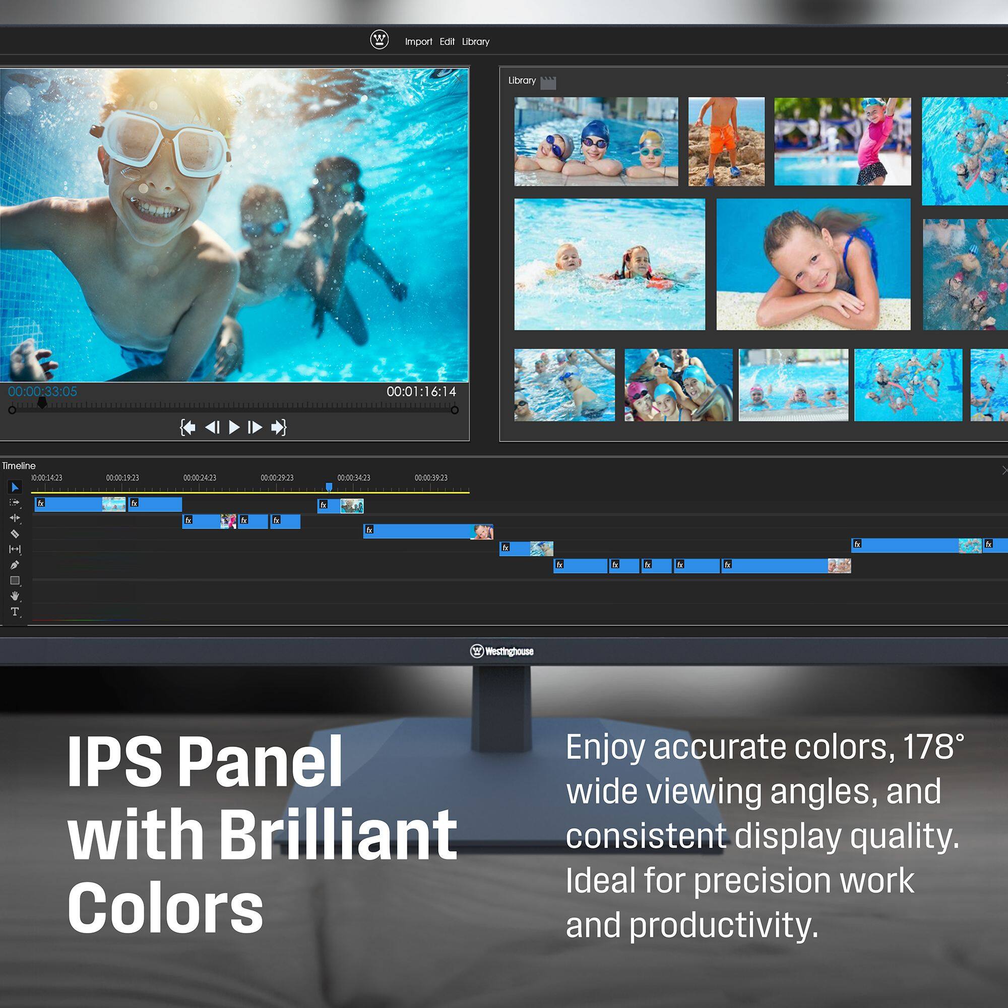 The Westinghouse 22 Inch Full HD Home Office Computer Monitor w/ 100Hz Refresh Rate & Adaptive Sync is the ideal display for office work, content creation, movie watching, and casual PC and console gaming. This monitor is built with an IPS panel that delivers superior visual clarity with its higher color accuracy, color and brightness screen uniformity, as well as wider viewing angles - making it the perfect display for video and photo editing. Equipped with a high native refresh rate of 100Hz, fast-moving elements - such as mouse cursors and animations - are rendered much more clearly, allowing for seamless and intuitive UI navigation. For PC gamers, the 100Hz refresh rate works seamlessly with Adaptive Sync technology to help minimize stuttering, screen tearing, and input lag for smoother and more responsive gameplay. This home office monitor comes with internal built-in speakers that deliver rich and robust audio for virtual calls, meetings, gaming, and content consumption, allowing you to keep your work or personal desk setup clean and clutter-free. To help reduce eyestrain and fatigue, our monitor incorporates EyeRest Technology for a flicker-free and anti-glare viewing experience. Low blue light and color temperature settings are also provided to help prioritize eye health. Featuring multiple connectivity options with HDMI 1.4, VGA, and a headphone input. HDMI cable is included.