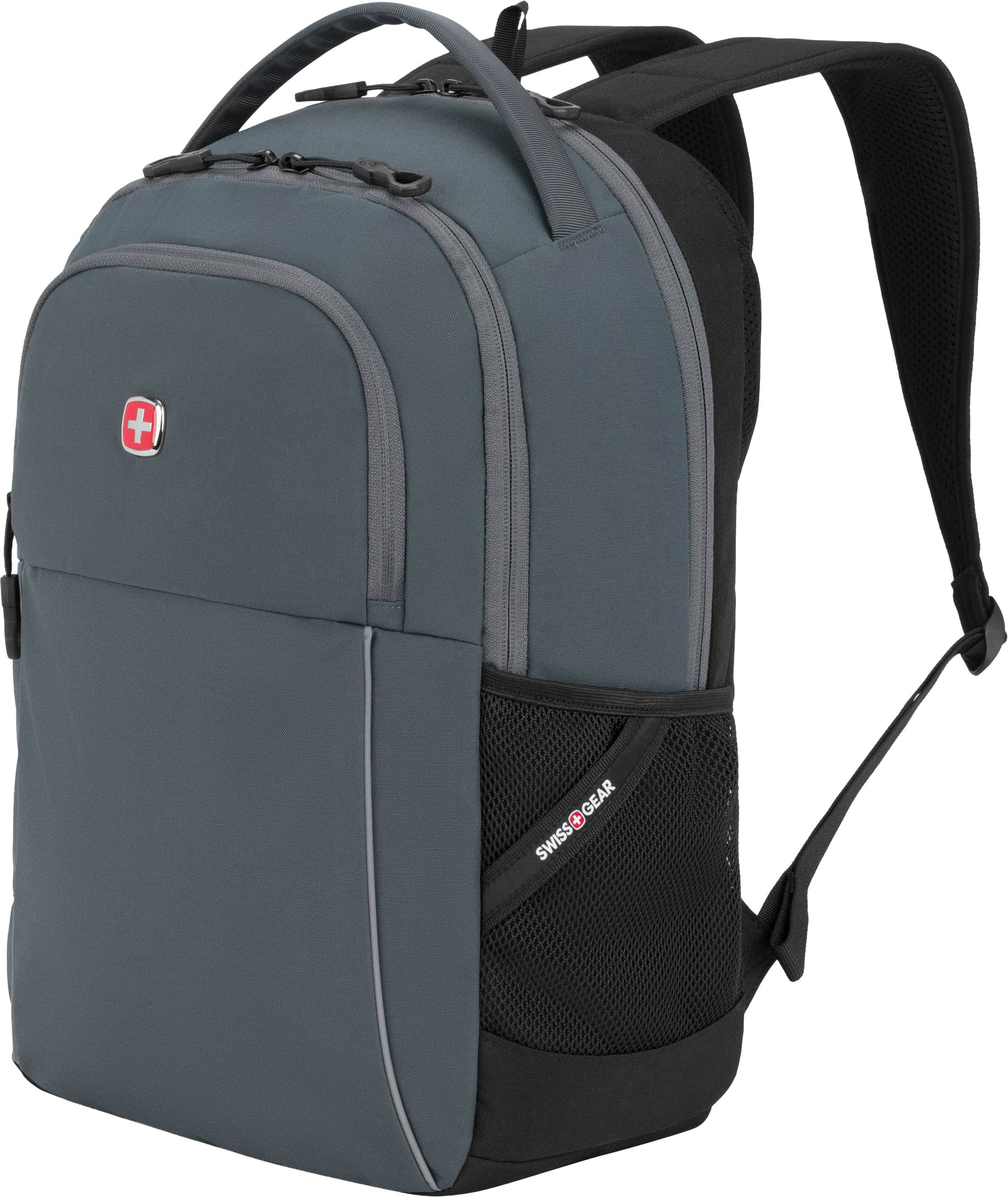 With its sleek, minimalist design and thoughtful organization, the SWISSGEAR 1039 16-inch Laptop Backpack is a lightweight, versatile option for daily use. It features a spacious main compartment alongside external pockets, providing ample space for electronic devices, books, beverages, a sweatshirt, and everything else you'll want to take along to the classroom and beyond.The main compartment opens effortlessly with a wrap-around zipper, while a secondary exterior zipper revels a built-in organizer panel. This panel includes a removable key/fob clip and compartments for pens, mobile phones, ID cards, and memory sticks. For quick access to frequently used items, the backpack offers a front zippered pocket, and two elastic side pockets securily hold water bottles or other beverages. Additionally, reflective accents enhance safety during nighttime activities. Designed for comfort, the backback features ergonomic, contoured, and adjustable shuld straps with padded, breathable fabric. A padded airflow back panel adds ventilation and support, while a wide, padded carry handle and a rear strap provide additonal carrying options.