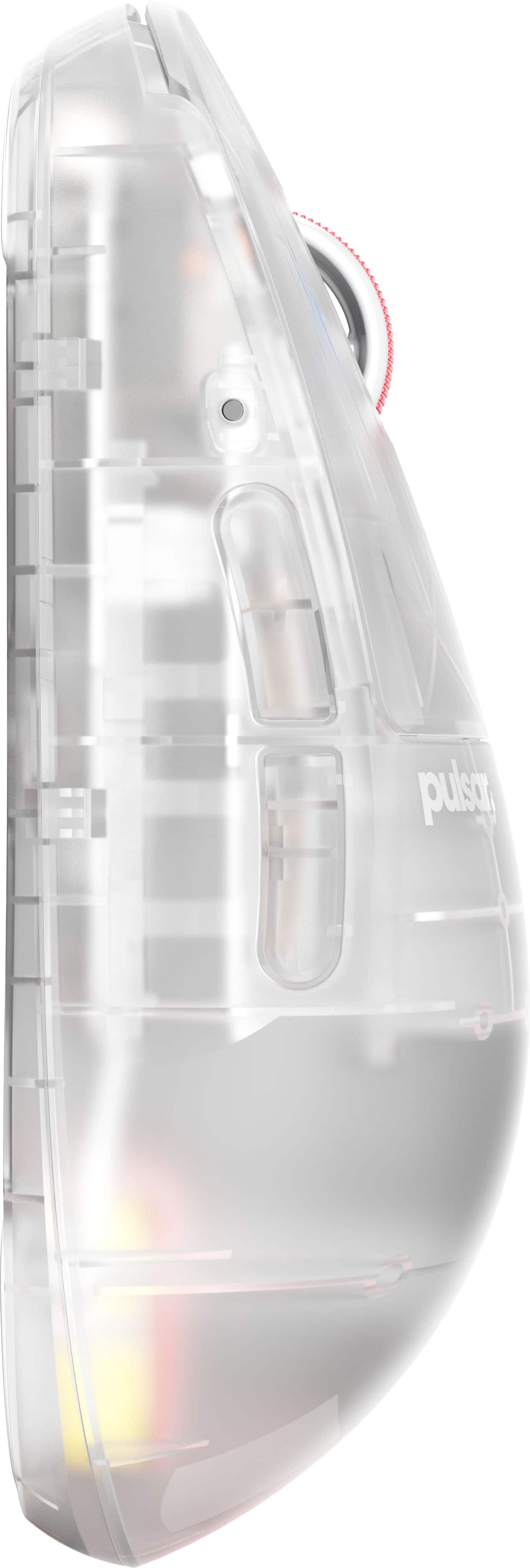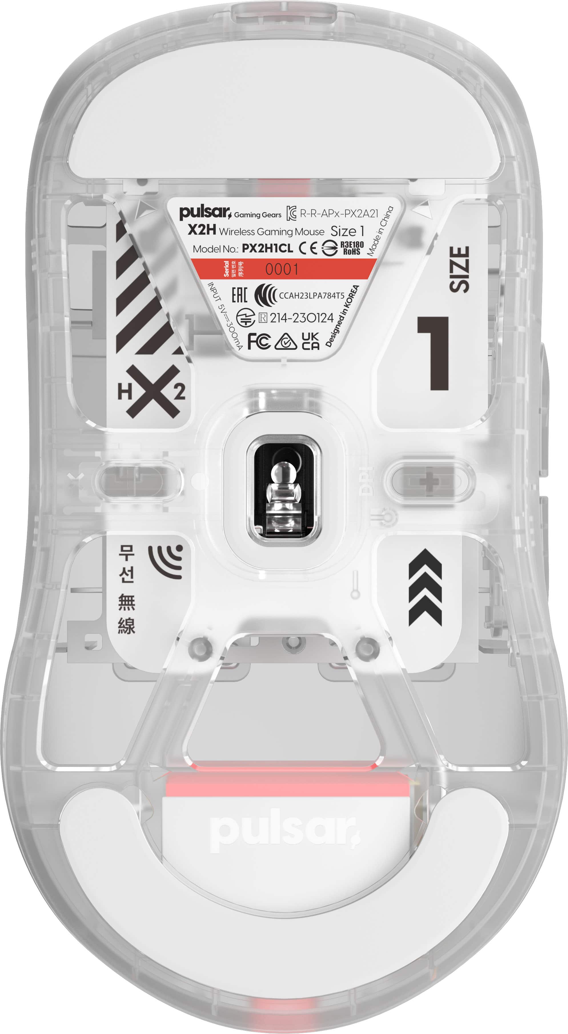 The latest X2H Super Clear Edition gaming mouse from Pulsar features a translucent design with striking red accents, capturing Pulsar's signature style that stands out. The X logo, visible through the clear black shell, evokes the intense spirit of eSports. With a secure and comfortable grip and a lightweight design, this mouse is not just about looks. It embodies Pulsar's technology, engineered to drive your gaming success.
