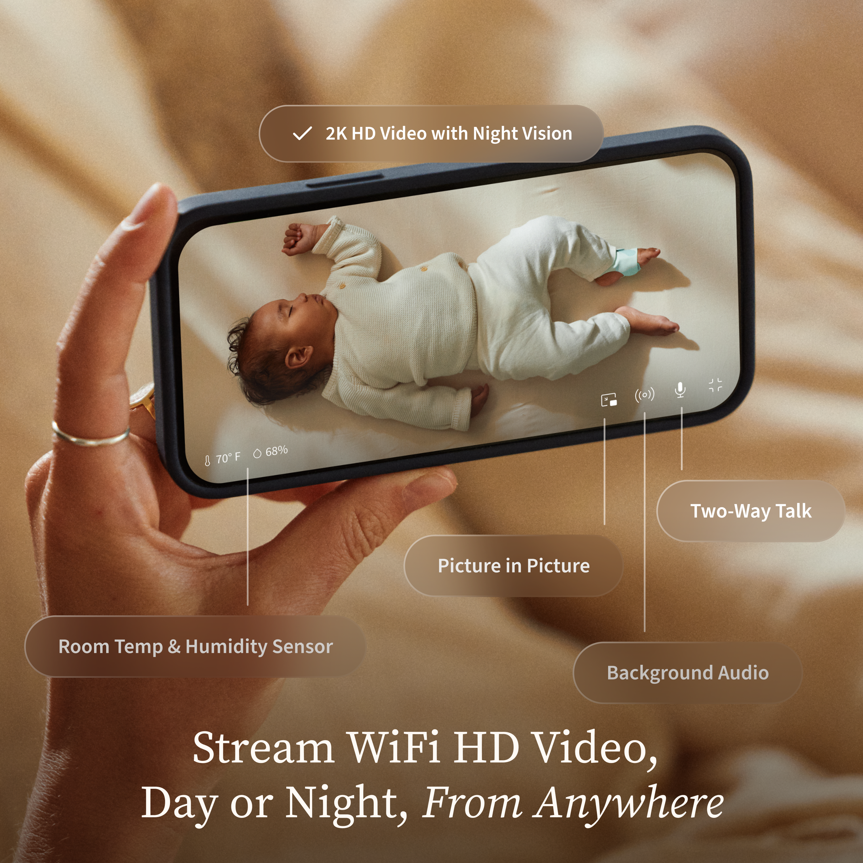 Owlet Dream Sight™ (Gen 3) streams crisp 2K HD video with night vision for around-the-clock visibility while detecting motion, sound, and crying to automatically save video clips in the Owlet Dream App and alert you in real-time when your baby needs attention. Two-way talk lets you soothe your little one from anywhere, and built-in temperature and humidity tracking helps maintain a safe, comfortable sleep environment. Plus, rest assured knowing your connection is protected by trusted, secure encryption and built-in privacy safeguards. Whether used on its own or as part of the Owlet ecosystem, Dream Sight delivers the clarity and confidence parents need, even when you’re not in the room.