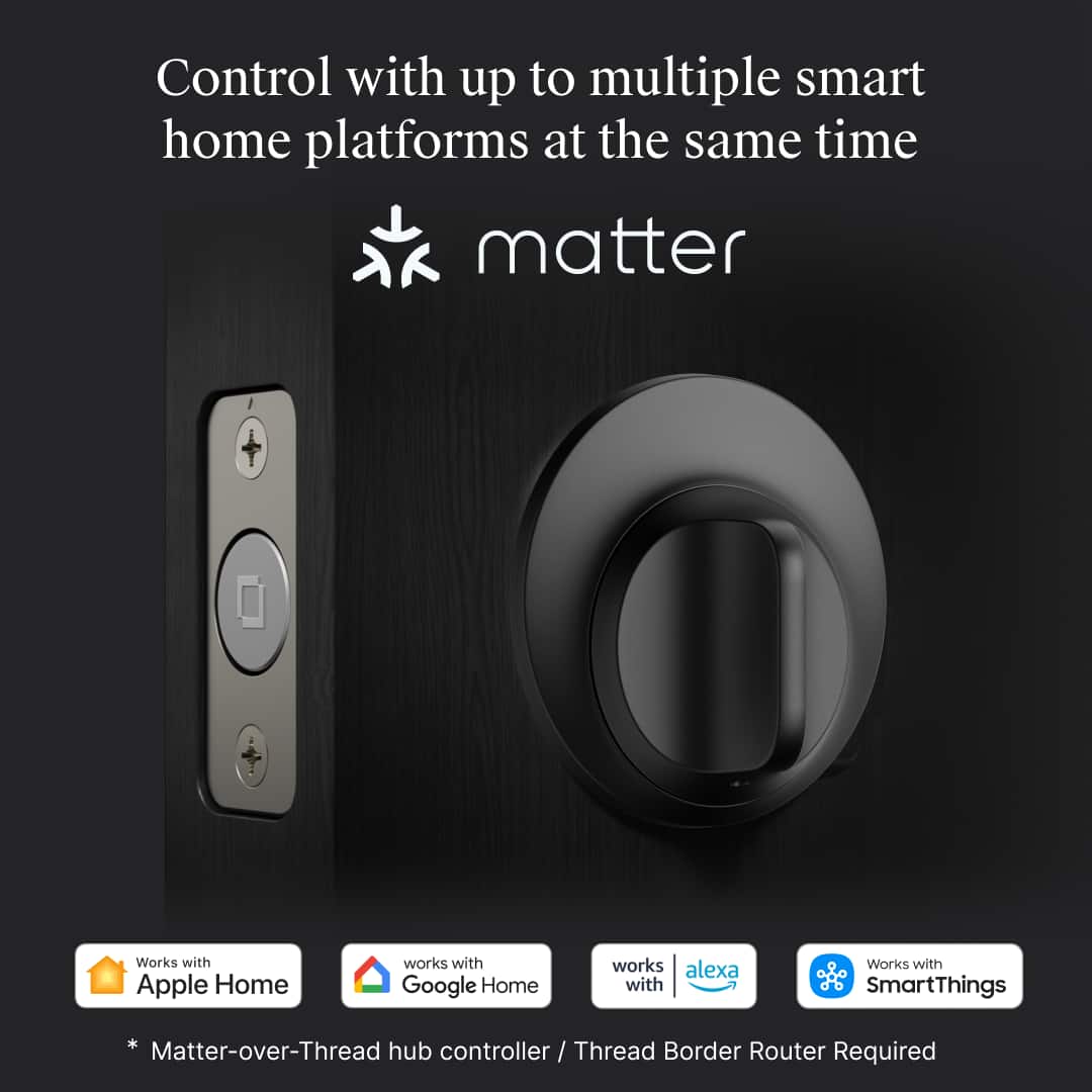 Level - Lock (Matter) – World's Smallest, Most Beautifully Designed Matter-Over-Thread Smart Lock - Works with Apple Home - Matte Black