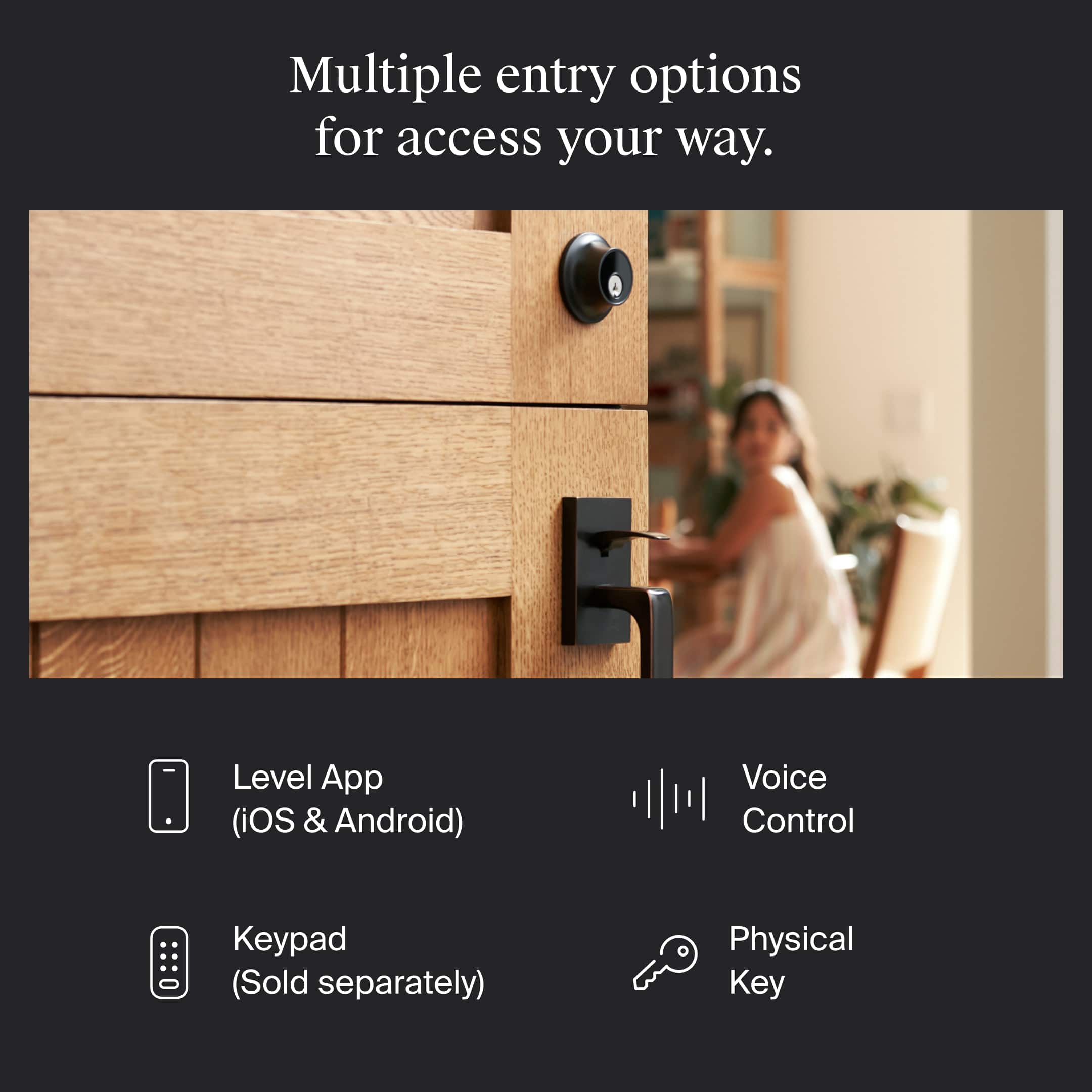 Level Lock (Matter) is the smallest, most beautifully designed smart lock ever made. Engineered with invisible technology, it’s a complete smart lock solution built to simplify your every day. Level Lock offers Matter-over-Thread and Bluetooth connectivity for compatibility with major smart home platforms, including Apple Home, Google Home, Amazon Alexa, and SmartThings (hub required). With premium craftsmanship and AAA BHMA certification, Level Lock delivers best-in-class security, durability, and finish—without the bulk. Whether you control it through the Level Home app or integrate it with your smart home, Level Lock brings you smart access that stays out of sight and blends in beautifully. Add Level Connect Wi-Fi Bridge for remote connectivity and advanced app features. Lock and unlock your door from anywhere, manage codes and cards for guests, and get real-time activity history—without a subscription. Remote features vary by platform.