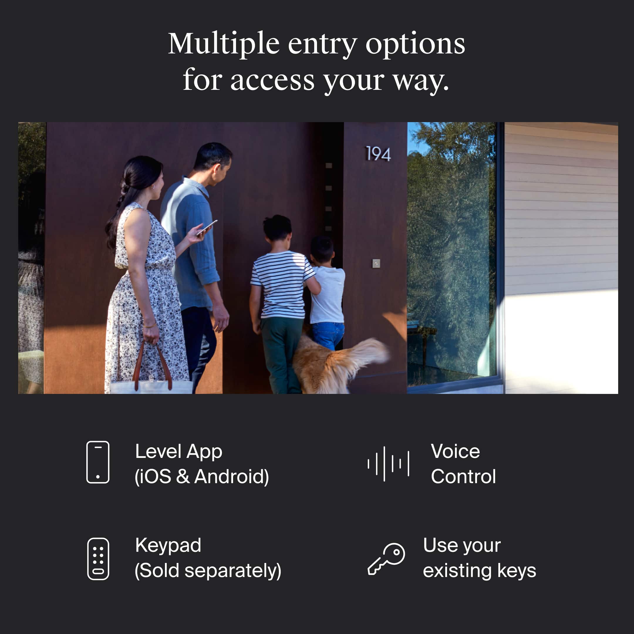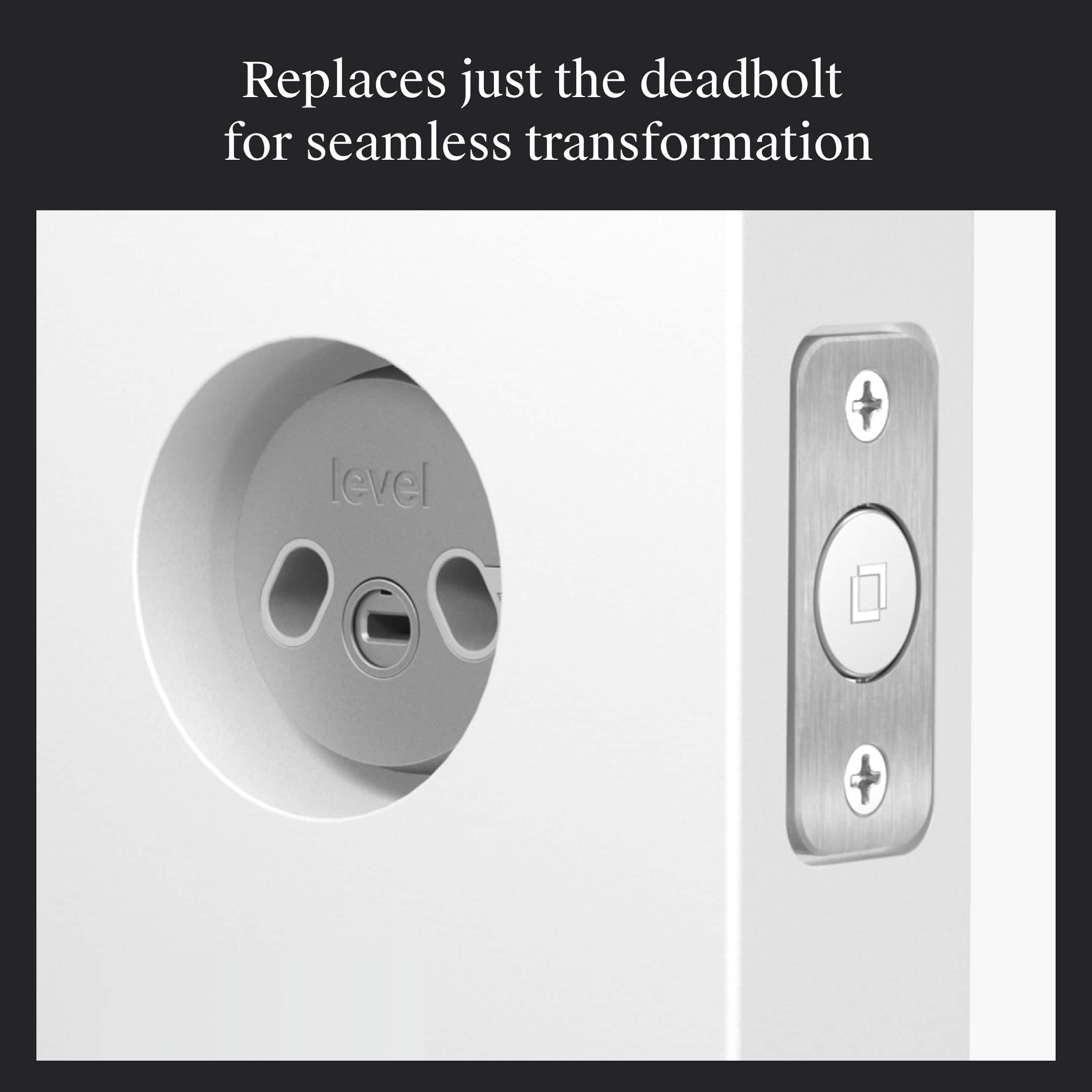 Level Bolt (Matter) transforms your existing deadbolt into a advanced smart lock - without changing your keys, hardware, or the look of your door. Designed to be invisible and built for durability, Level Bolt installs inside your door, keeping your exterior hardware untouched while adding smart functionality. Built on the advanced Matter-over-Thread standard, Level Bolt integrates with Apple Home, Google Home, Alexa, and SmartThings (Matter hub and border router required). Access your home in multiple ways: with the Level Home app (iOS and Android), shared guest access, your original keys, or the optional Level Keypad (sold separately). Install it yourself in minutes using just a screwdriver. Level Bolt fits standard 2-3/8" and 2-3/4" backsets and includes everything needed for a smooth DIY setup. Powered by a hidden CR2 battery and engineered with a 6-stage stainless steel gearbox, Bolt delivers strength, discretion, and long-lasting performance - without compromising the style of your home.