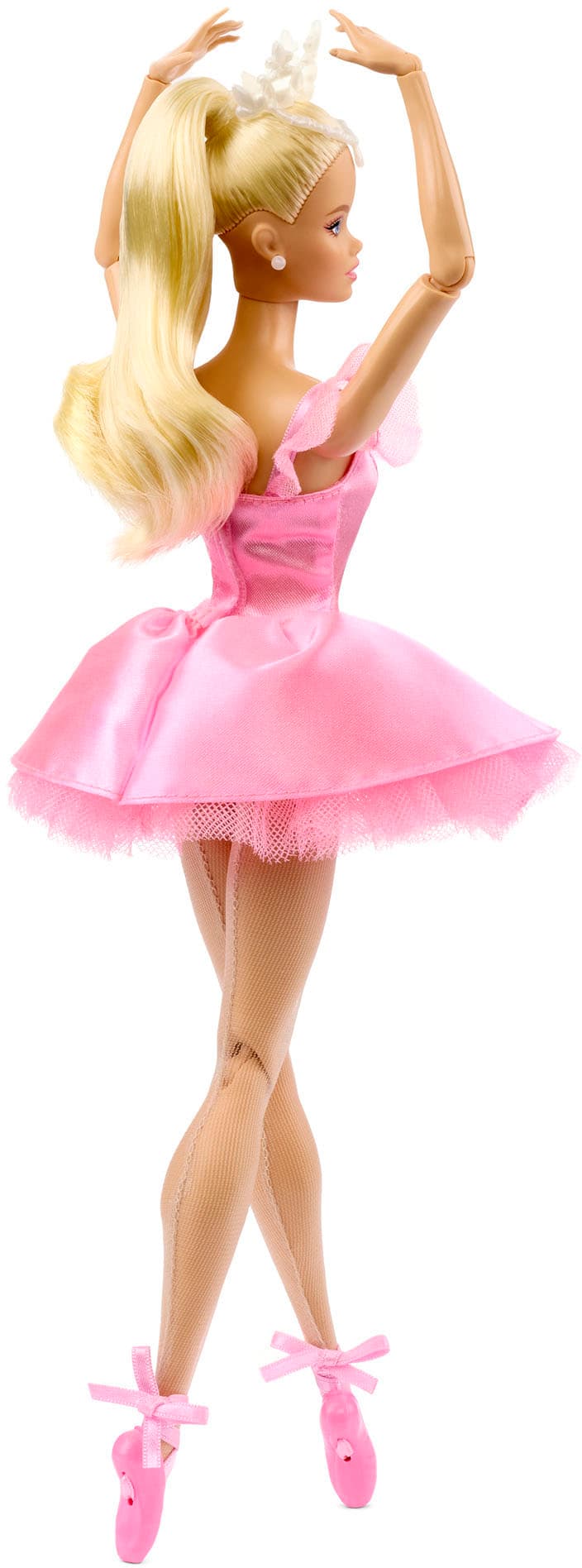 Celebrate a special performance or inspire ballet dreams with Ballet Wishes Barbie doll. This beautiful Barbie doll is recital-ready with a satiny ballerina costume in the pretty shade of pink and a matching, multi-layered tulle skirt. A gorgeous glittering tiara, pearl earrings, tights, and pink pointe shoes are the finishing touches. Flexible joints at the shoulders, elbows, wrists, hips and knees inspire endless posing possibilities and stunning displays. Ballet-lovers and performers aged 6 years and older will treasure Ballet Wishes Barbie doll for years to come. Includes doll stand and Certificate of Authenticity.