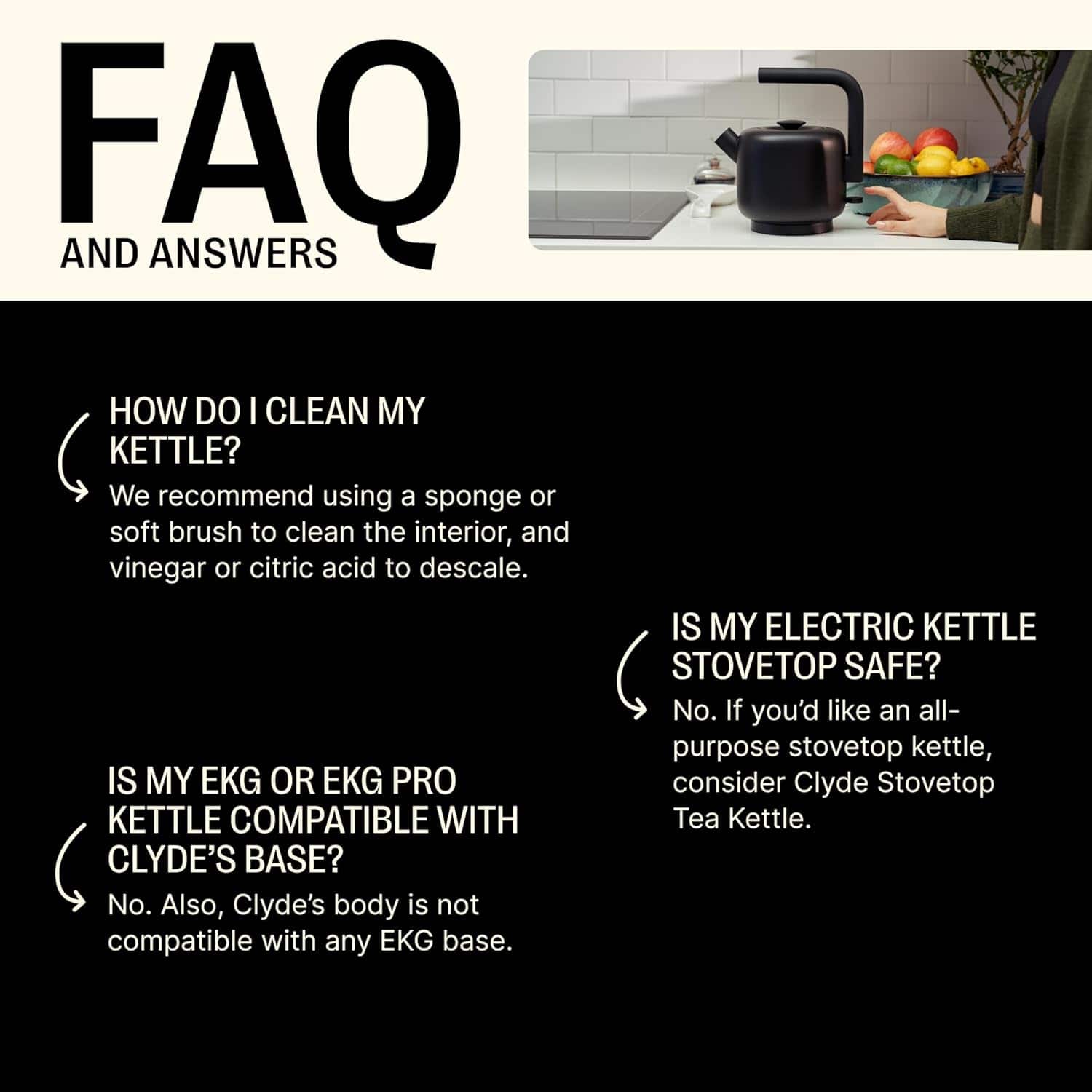 Your daily driver is now a countertop centerpiece. With a 1.5 liter capacity, a wide mesh spout, and a stunning silicone handle, Clyde is built for all-purpose use: tea, French press, cocoa, ramen, and all your kitchen creations.