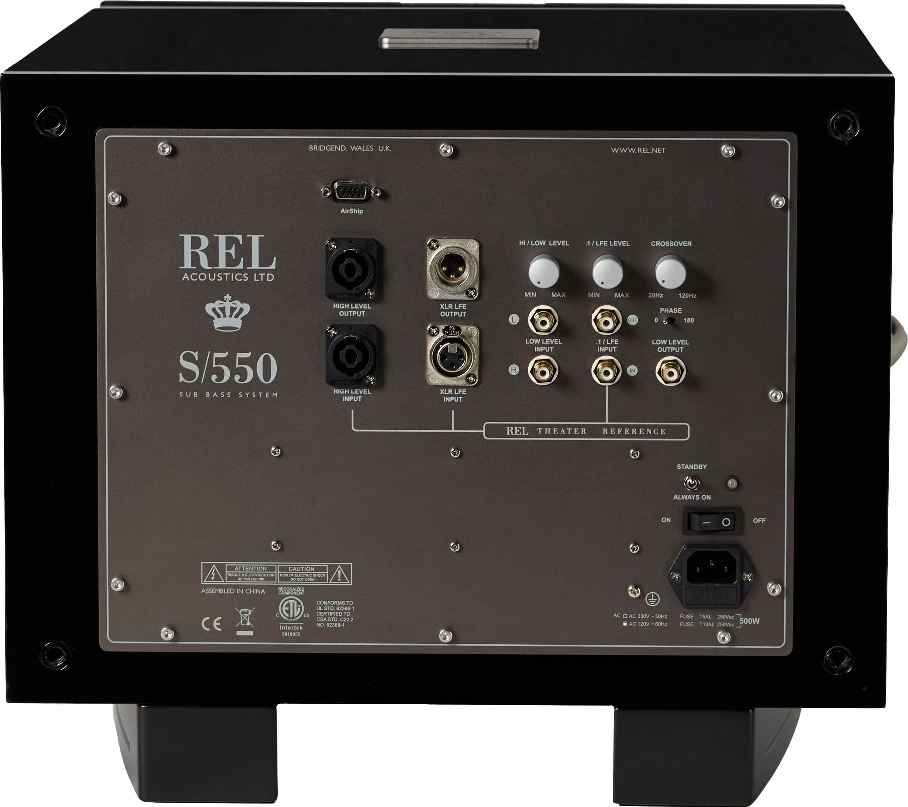 S/550 is a powerhouse 550W sub, replaces older S/510. Features heavy duty 10” active/12” passive. Fast, dynamic and exceptionally deep bass. Available in Piano Black Lacquer with optional Airship Direct™ plug in wireless.