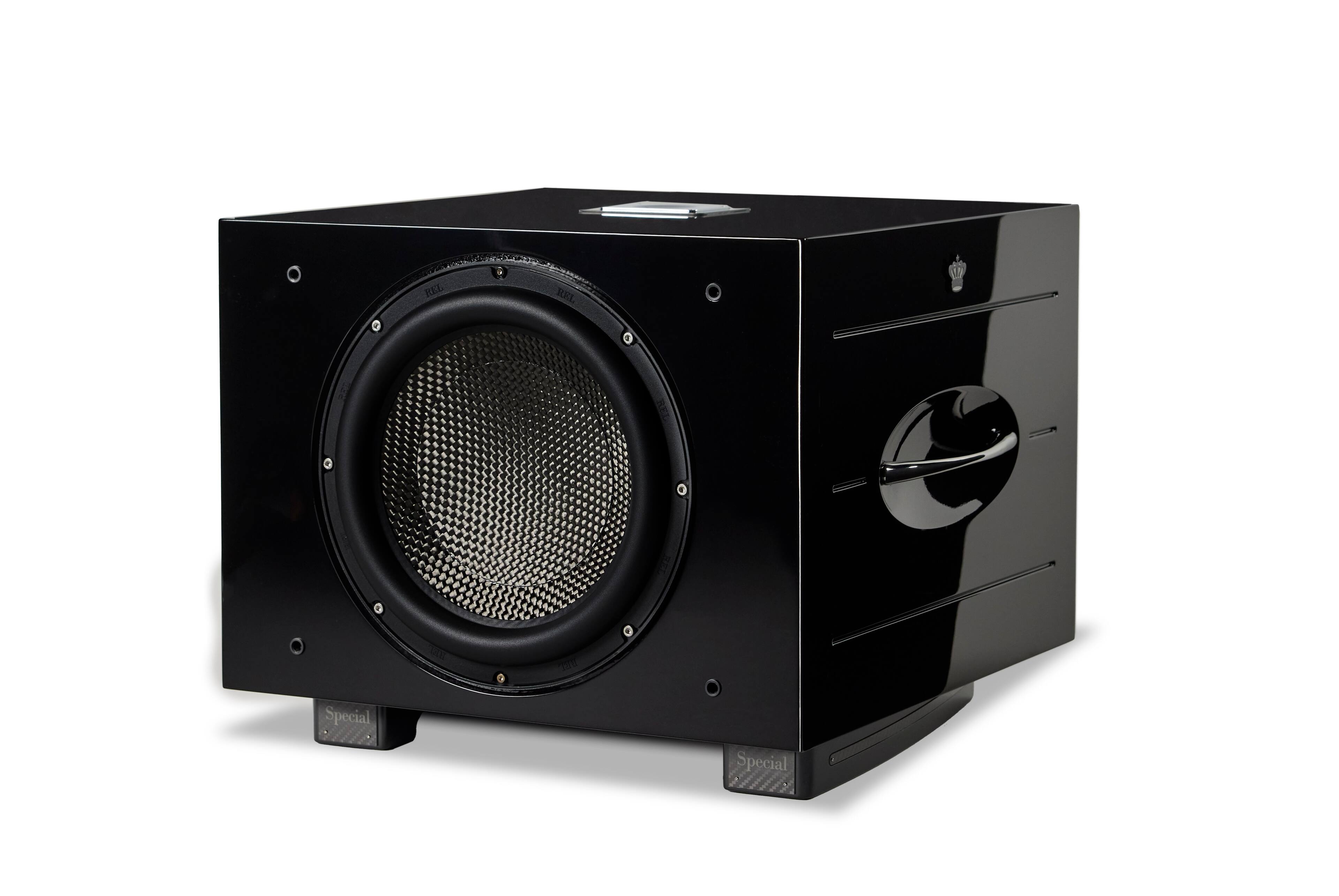 Carbon Special Black Label, with premium wood grille, comes closest to delivering the Reference experience at about half the price. A 12” pure carbon fibre active driver with almost 5” of total stroke mates with a 900-watt amplifier and a downfiring 12” passive. Renowned for its musical character and explosive dynamics. Optional wireless.