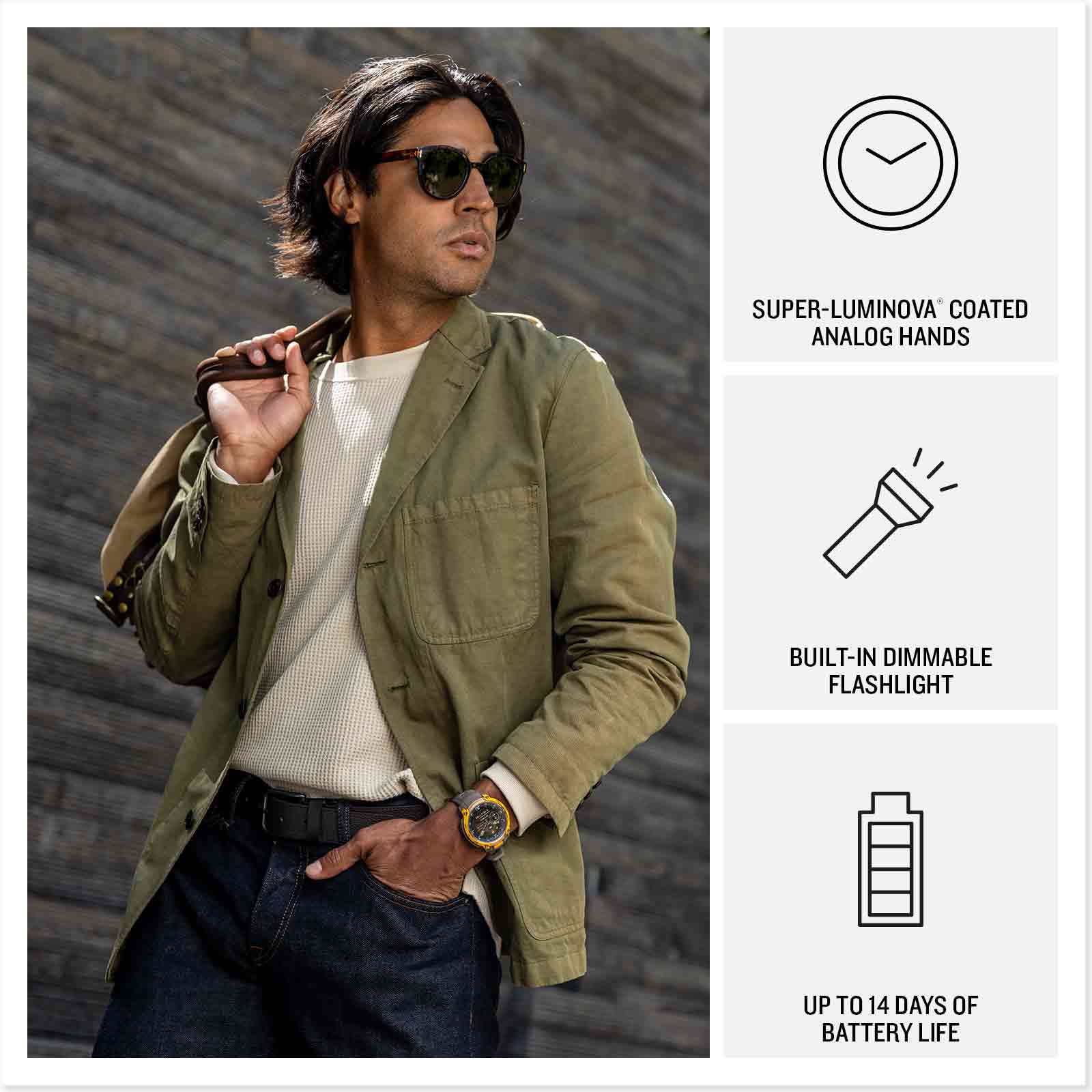 Instinct Crossover AMOLED is the hybrid GPS smartwatch with analog watch hands and a bright AMOLED display. The 1.2’’ digital display, protected by a sapphire lens, brings data to life with detail-rich graphics. A dimmable LED flashlight and rugged MIL-STD 810 build quality for thermal and shock resistance make it ready for your toughest adventure. Superior readability of the analog hands, even in low-light conditions, is further enhanced by the bright display. All-day health and wellness monitoring keeps an eye on your heart rate, sleep, stress and more (data presented is intended to be a close estimation of metrics tracked). Stay connected with smart notifications, Garmin Pay contactless payments and Connect IQ Store integration when paired with your smartphone. Enjoy up to 14 days of battery life in smartwatch mode and up to 18 days in battery saver mode.