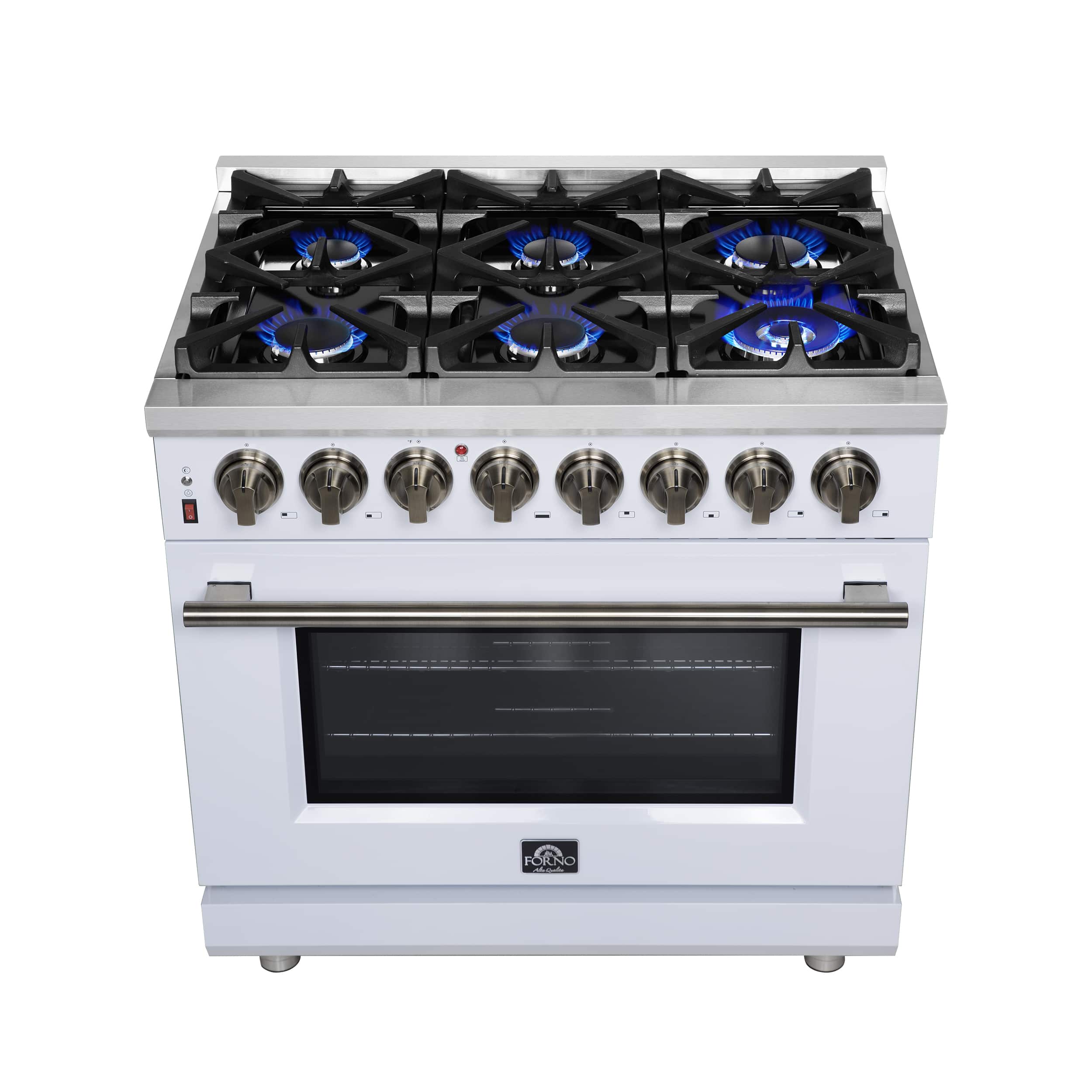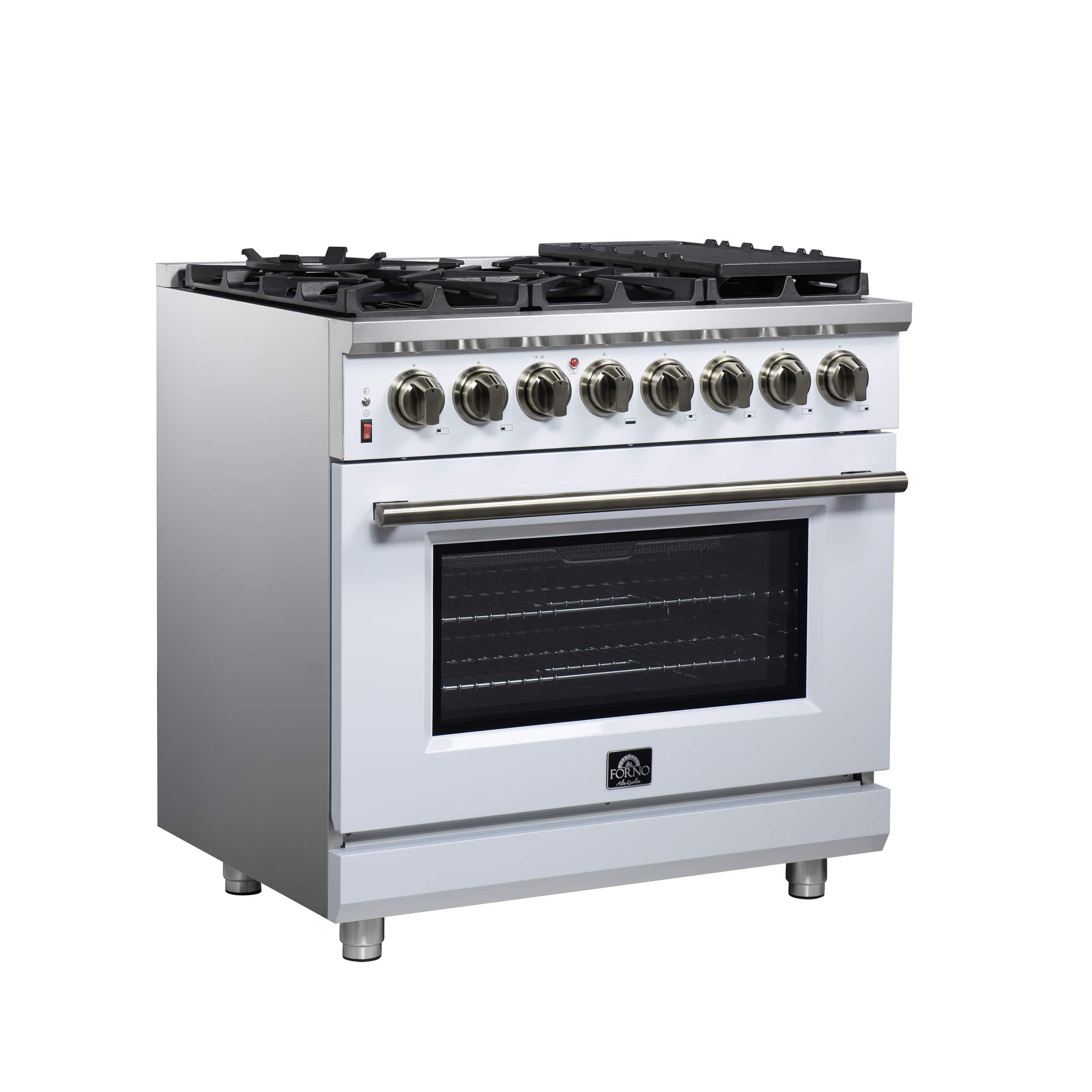 Forno Appliances - Massimo 5.36 Cu. Ft. Freestanding Dual Fuel True Convection Range with Air Fryer Basket - White