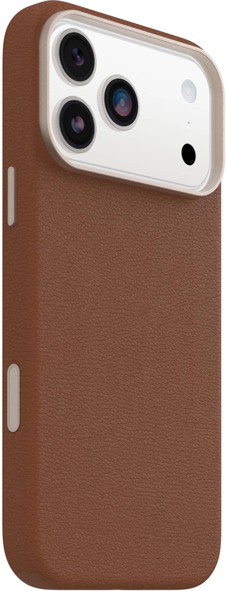 Luxury iPhone 17 Pro Max case with premium cactus-based leather alternative elevates your style. This iPhone 17 Pro Max case is refined for elegance — from the metal buttons and inner felt backing to the metal camera crown and razor-thin profile. Not only does this case withstand drops, it also works with Camera Control and has powerful MagSafe magnets for charging. When you want to make a lasting impression, slip on Symmetry Series Cactus Leather case. Model 77-99064.