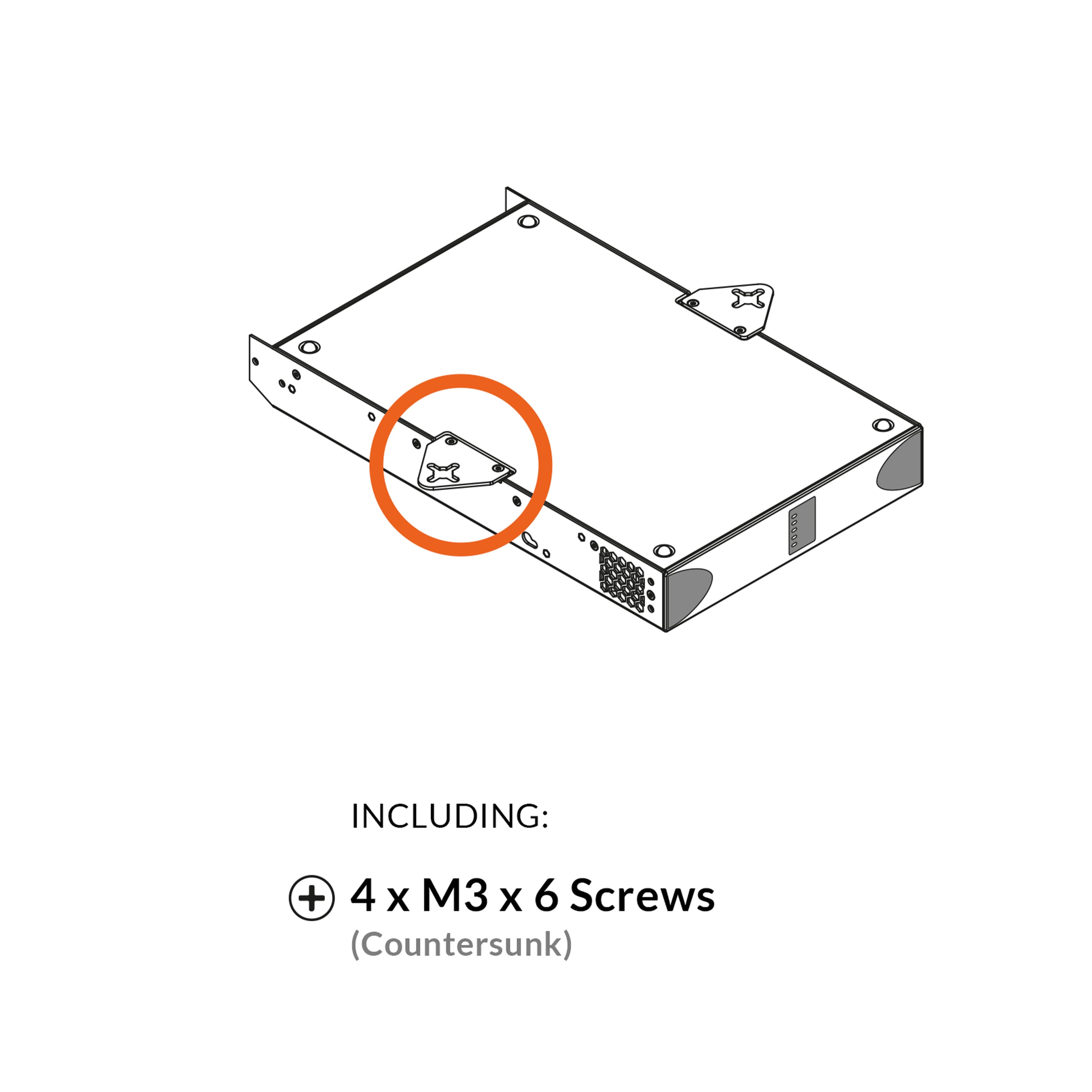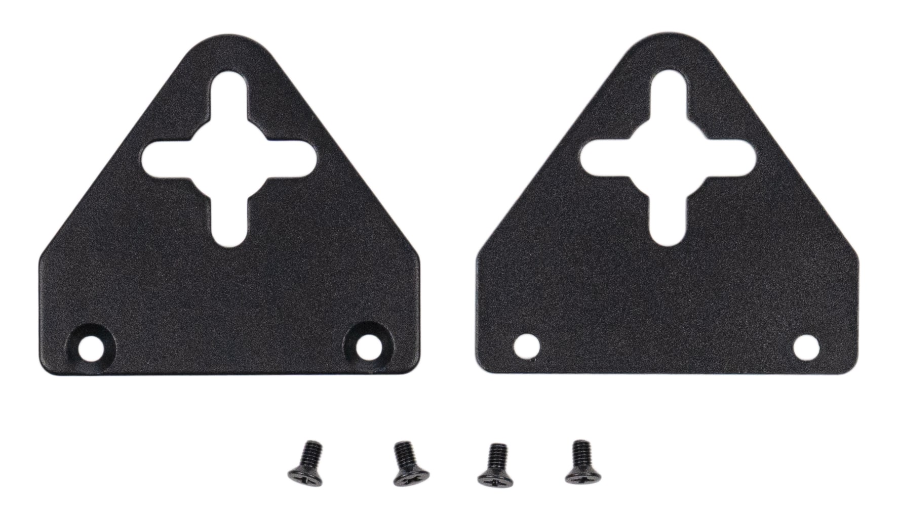 Dual surface mount bottom-loaded brackets for securing half-rack PowerZone and half-rack PowerZone Connect amplifiers to flat surfaces