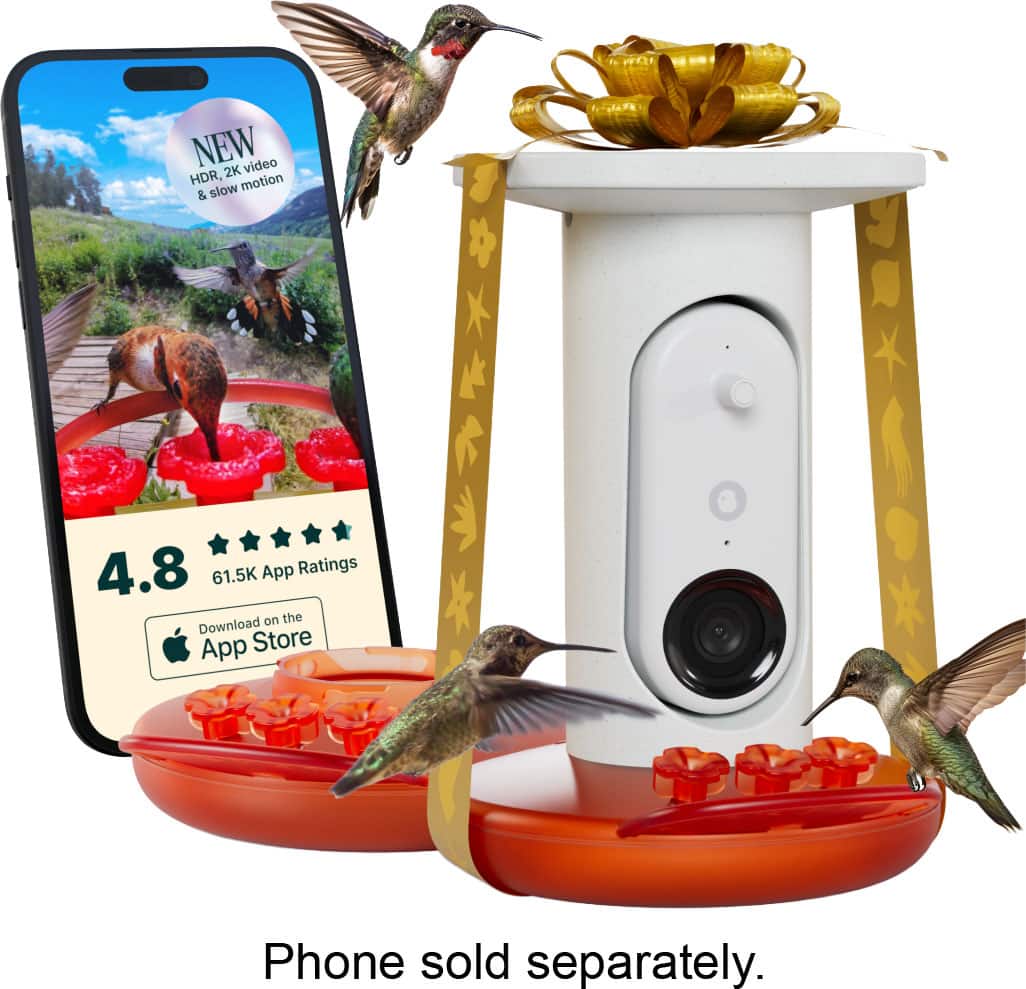 Bird Buddy - Smart Solar Pro Hummingbird Feeder with Camera + Extra Base - White