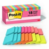 Post-it Notes stick securely and remove cleanly, featuring a unique adhesive designed for use on paper. 3 in. x 3 in. size is great to call out important information or leave notes in calendars or planners. The Poptimistic collection gives your messages pop and optimism with bright colors that grab attention. Cabinet pack ensures you always have notes for your great ideas. Post-it Notes are recyclable, and the paper in Post-it Notes is sourced from certified, renewable and responsibly managed forests. 18 Pads/Pack, 100 Sheets/Pad