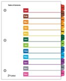 Keep important information organized with this set of Cardinal OneStep 12-tab table of contents and dividers. The complete set covers letter-sized papers and is designed with reinforced tabs to help prevent tearing. This set of Cardinal OneStep 12-tab table of contents and dividers has sleek, colored tabs that list each month from January through December for chronological organizing.
