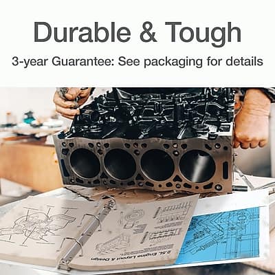 Cardinal XtraLife ClearVue Slant-D three-ring non-stick locking 1-1/2 inch white binders provide your staff with a sturdy way to archive reports, create lengthy presentations and to exhibit professional-looking materials. ClearVue overlays let you add title pages to reduce confusion while creating stunning color graphics for people to see. Horizontal pockets inside both covers offer storage for media that's not standard three-hole paper, such as brochures, photos and index cards. The non-stick vinyl cover prevents smudges and smears during long-term storage.