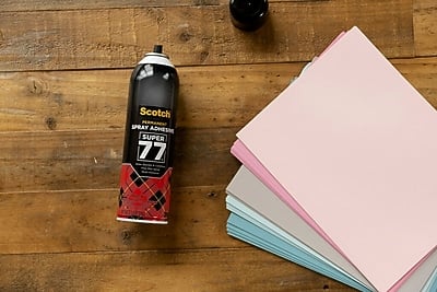 Scotch Super 77 Spray Adhesive is an extremely versatile, fast drying spray adhesive that bonds a wide range of lightweight materials. Its fast, aggressive tack and low soak in make it ideal for a broad range of projects. Use it for bonding paper, cardboard, fabric, cushion foam, plastic, metal, wood, and much more.