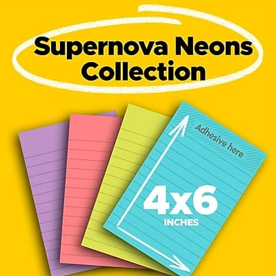 Post-it - Super Sticky Notes, 4" x 6", Supernova Neons Collection, Lined, 45 Sheets/Pad, 24 Pads/Pack (660-24SSMIA-CP) - Assorted