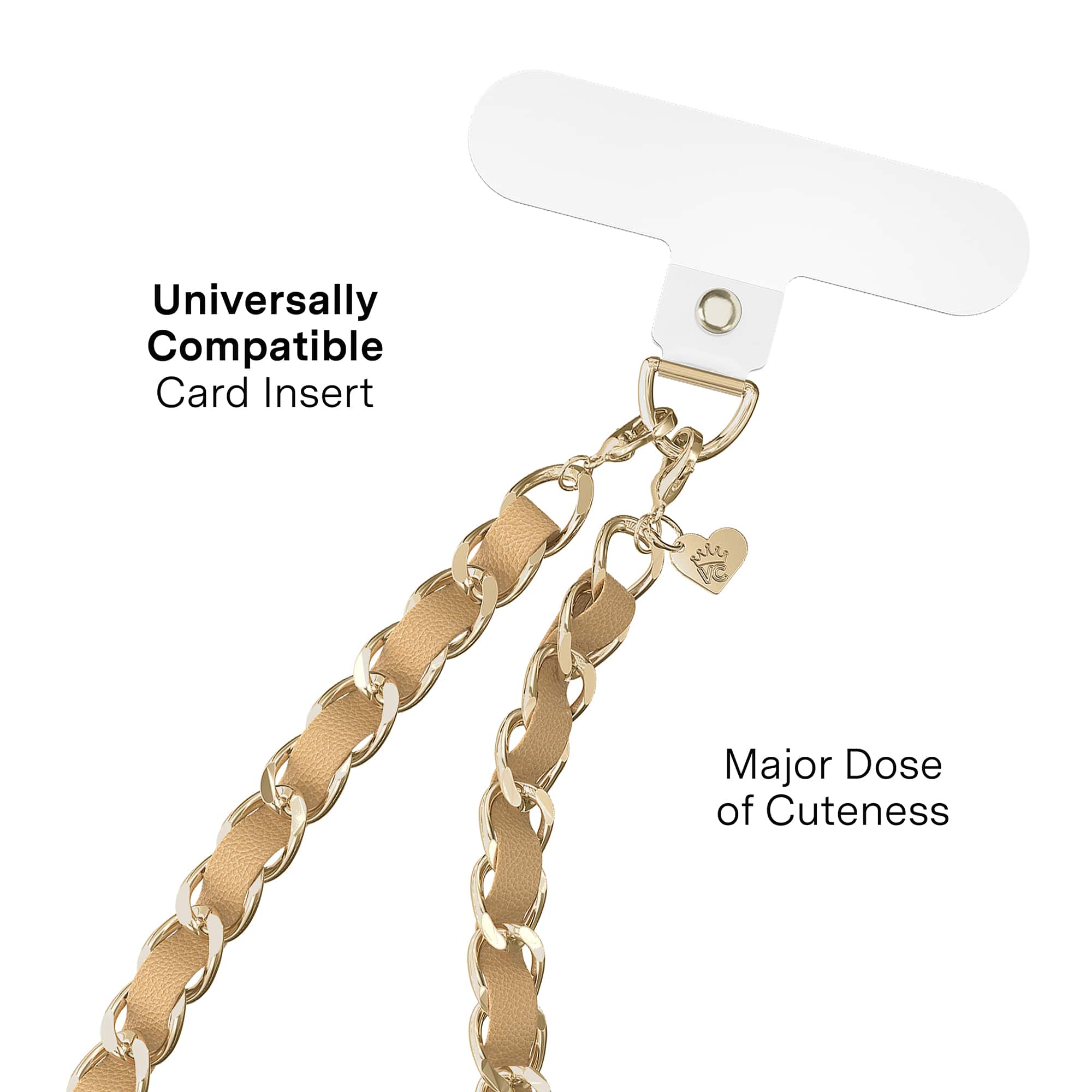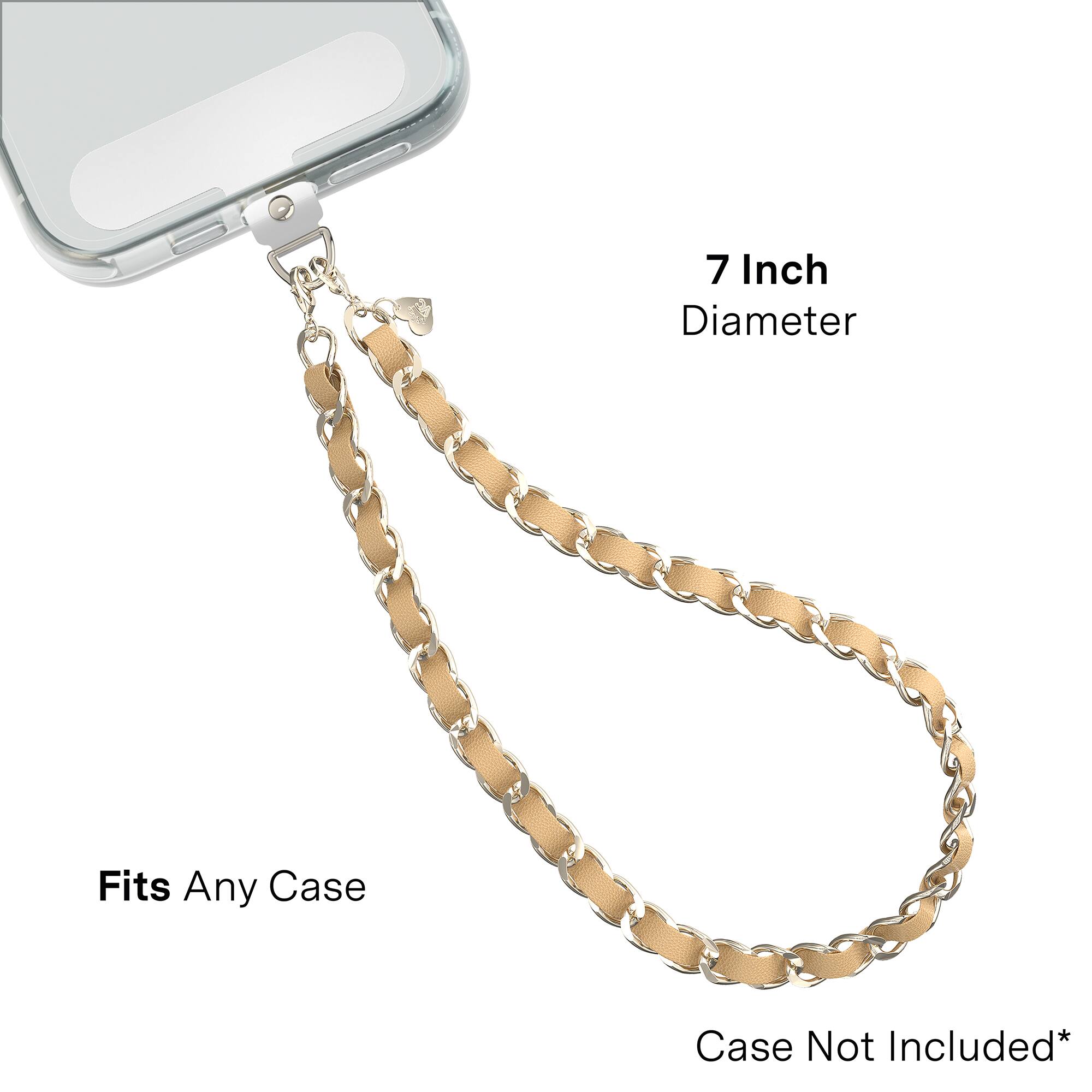 This Nude Leather Chain Phone Charm Wristlet easily attaches to your phone case to provide an extra loop of security and a major dose of cuteness!