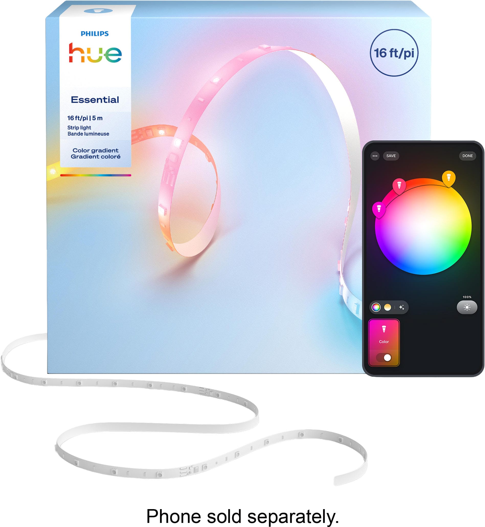 Philips - Hue Essential Lightstrip 5m (16ft) - Vibrant Color and Ambiance - Color Gradient