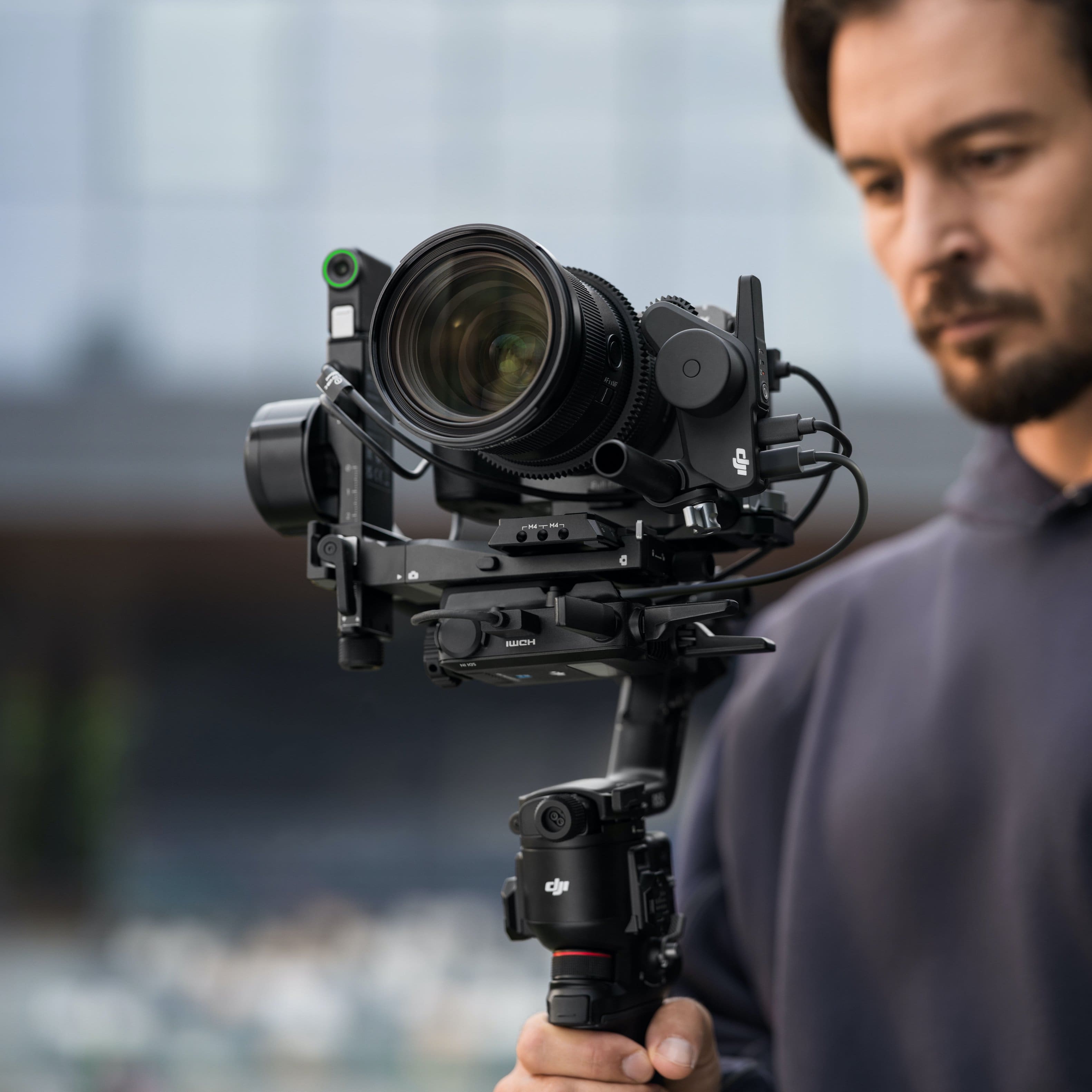 DJI RS 5 features touchscreen subject selection with the new tracking module, smooth balancing from fine-tuning knobs, and direct control via the new briefcase handle—all backed by faster charging and extended battery life.