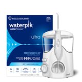 The Waterpik Ultra water flosser WP-100 in White delivers maximum performance and convenience - making it easy for anyone to have healthier gums and cleaner teeth in 1 minute a day. This countertop electric water flosser features 10 safe and effective settings, a precision flossing wand with on/off water control, and storage for extra tips built into the lid. Great for anyone with braces, implants, crowns, bridges, or periodontal pockets, it includes 6 flossing tips for a variety of dental needs and a removable 22-ounce (650 ml) covered reservoir with 90+ seconds of flossing time. The 360-degree rotating tip handle easily reaches your whole mouth, even back teeth. Removes up to 99.9% of plaque bacteria that causes gingivitis, cavities, and bad breath from treated areas and is clinically proven up to 2X as effective as string floss for removing bacterial plaque and improving gum health. Waterpik is the #1 water flosser brand recommended by dental professionals, and the Ultra water flosser is accepted by the American Dental Association (ADA) for safety and effectiveness.