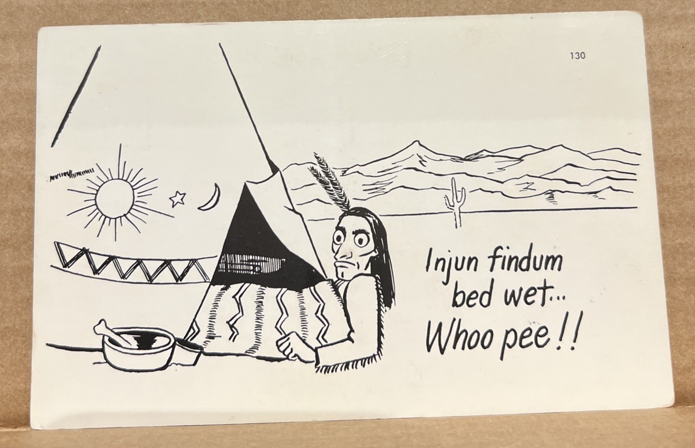 Postcard Humor LAFF Card Injun Finding Bed Wet Whoo Pee! Unused 1950 Cooper’s