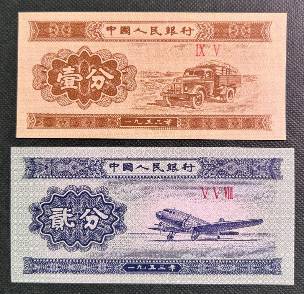 CHINA 1953 1 AND 2 FEN P-860c P-861b GRADE UNC Free Shipping